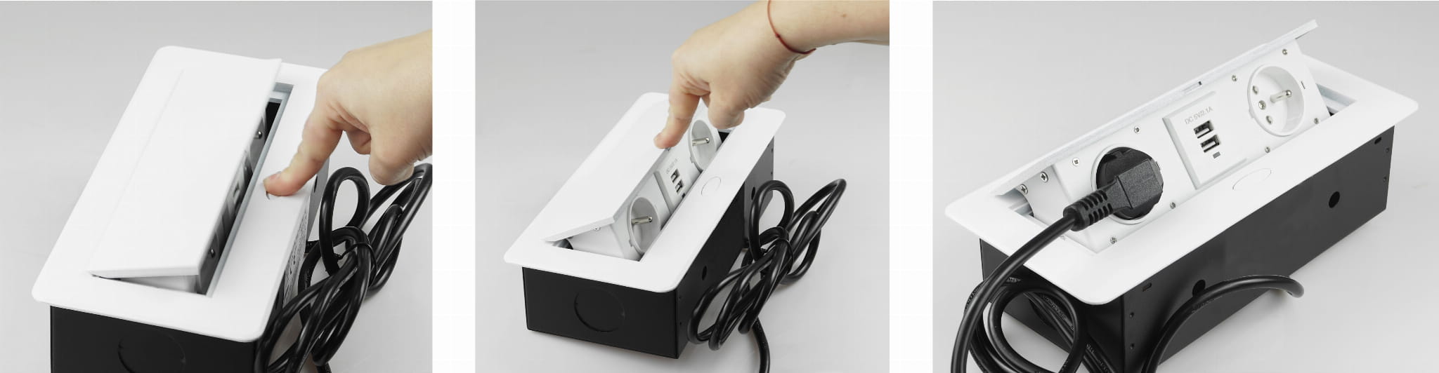 Dzięki naszemu gniazdu nablatowemu możesz ukryć nieestetyczne przewody i kable, pozostawiając tylko elegancki i nowoczesny wygląd blatu.