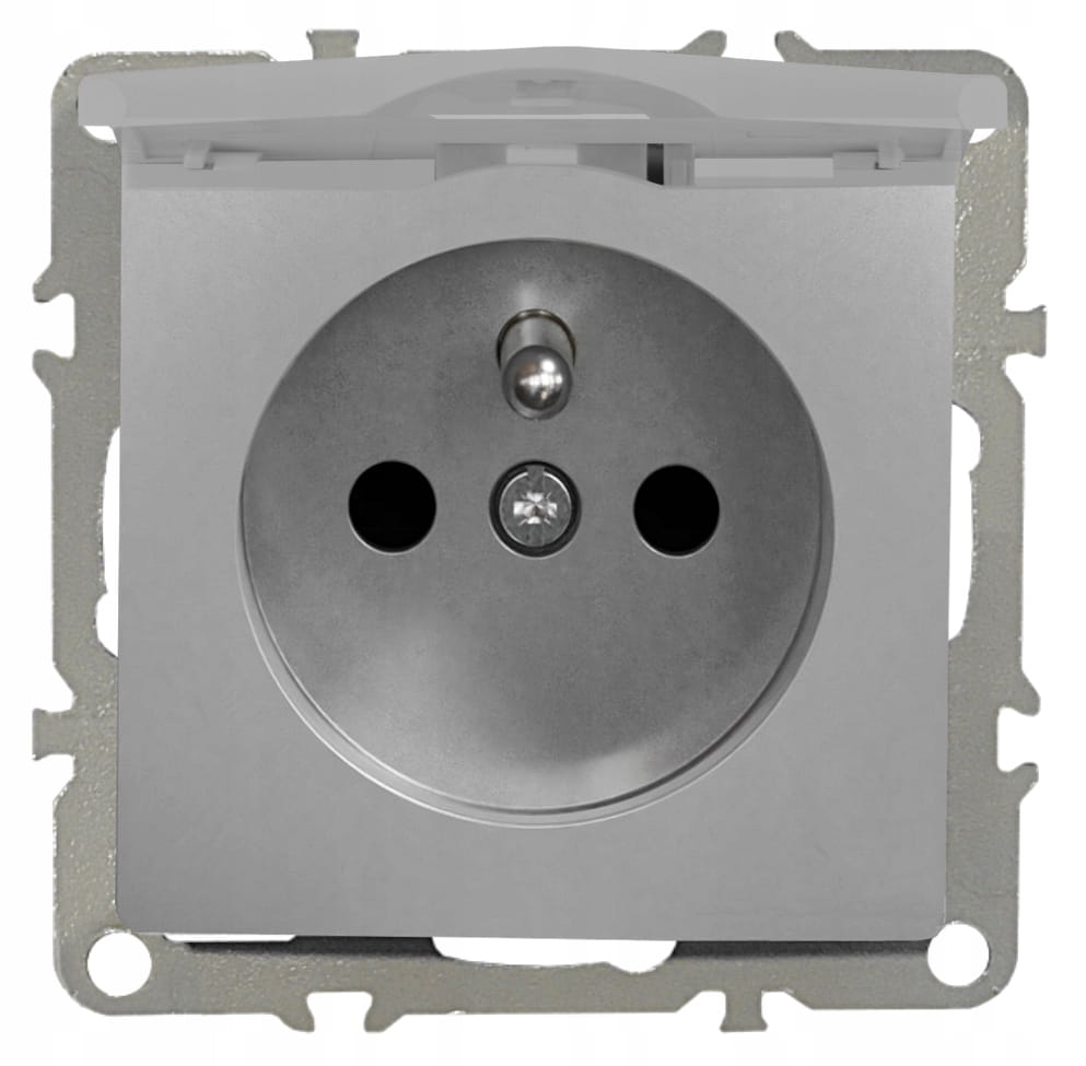 Gniazdo Elektryczne Z Bolcem Szare Gniazdko Pojedyncze Z Klapką QUADRA