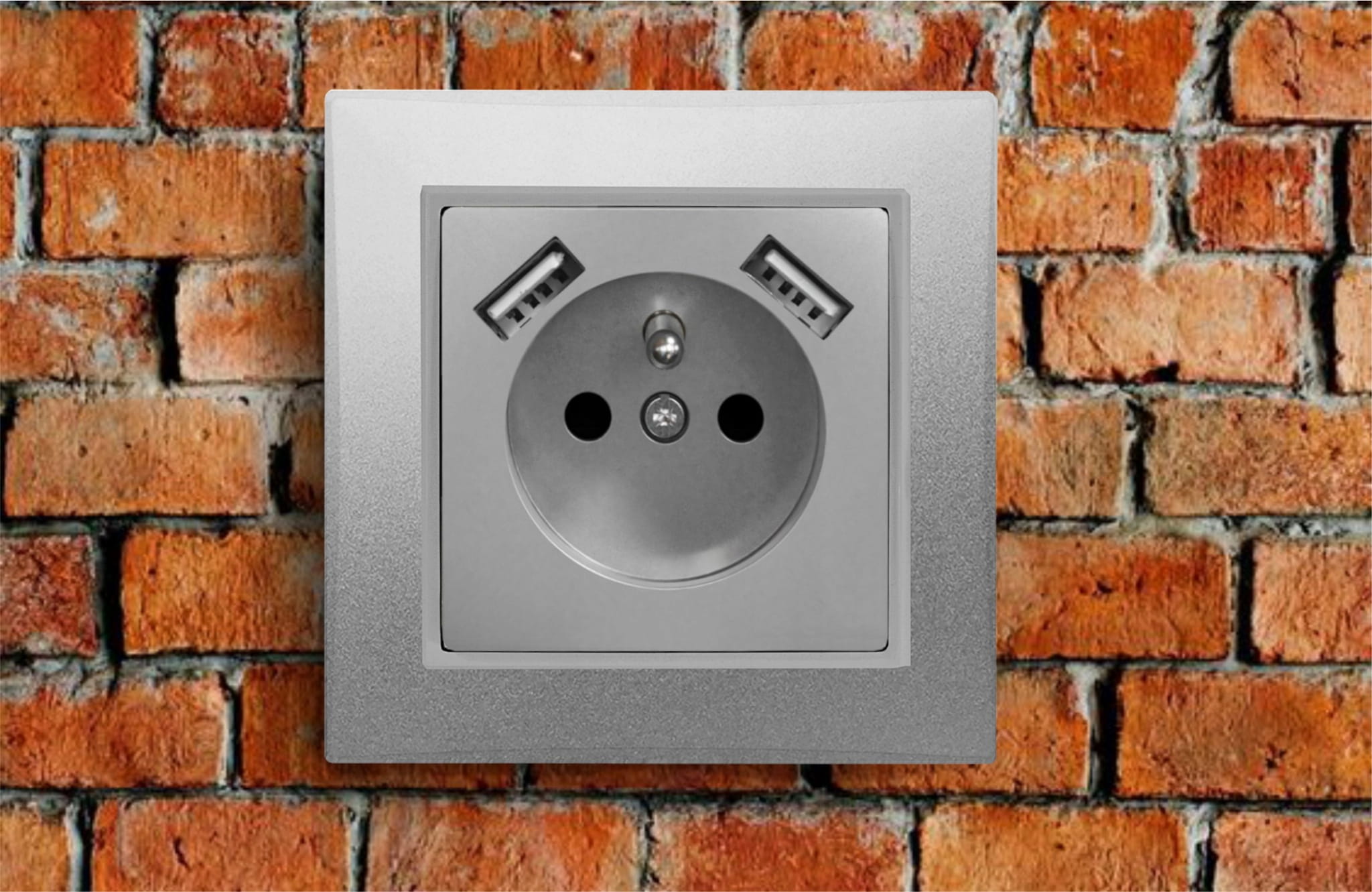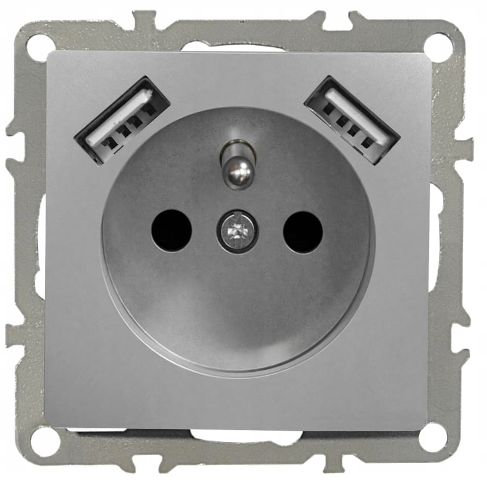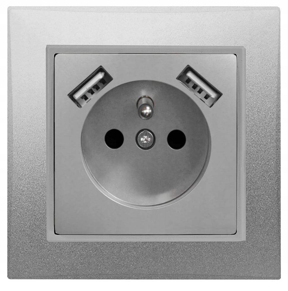Gniazdo Elektryczne Z Bolcem Szare Gniazdko Pojedyncze Z USB X2 2.1A Typ A