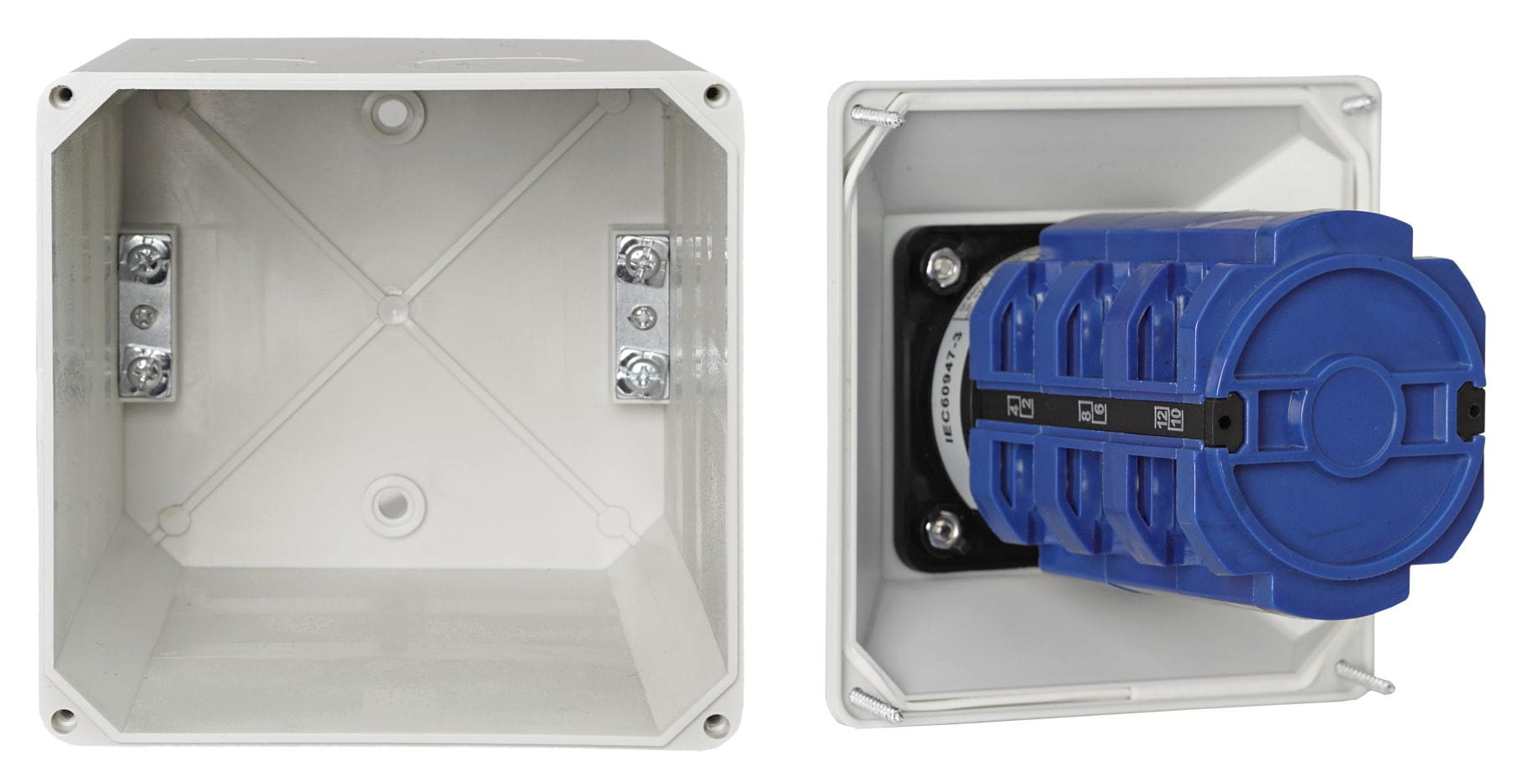 Łączniki krzywkowe w obudowie umożliwiają sterowanie przepływem prądu w kilku obwodach.