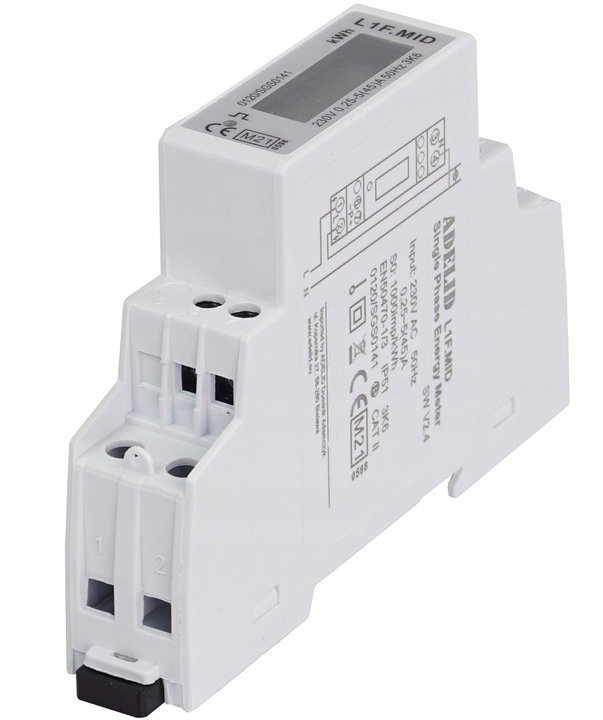 Licznik, podlicznik prądu energii elektrycznej, 1-fazowy MID 45A 50/60Hz IP51