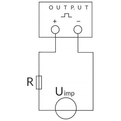 Wyjście impulsowe powinno zostać podłączone zgodnie z zamieszczonym schematem.