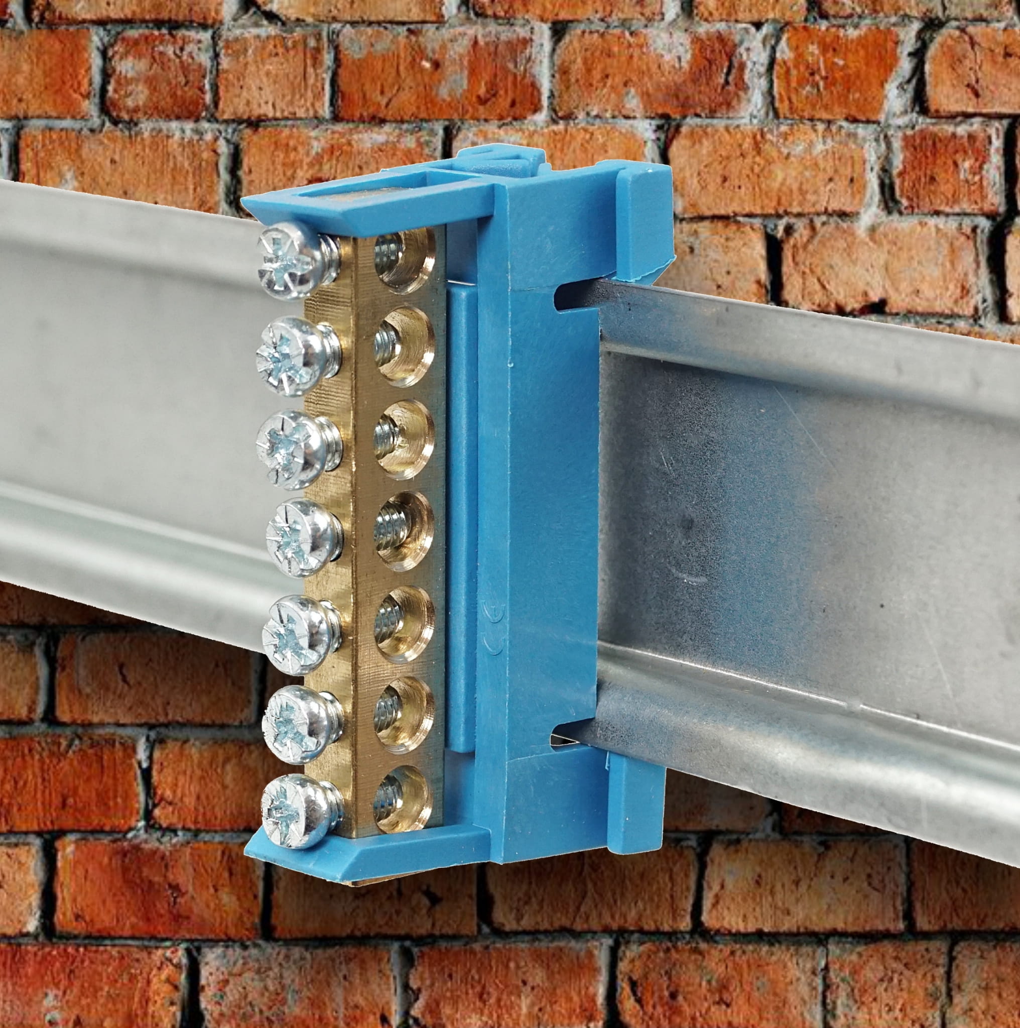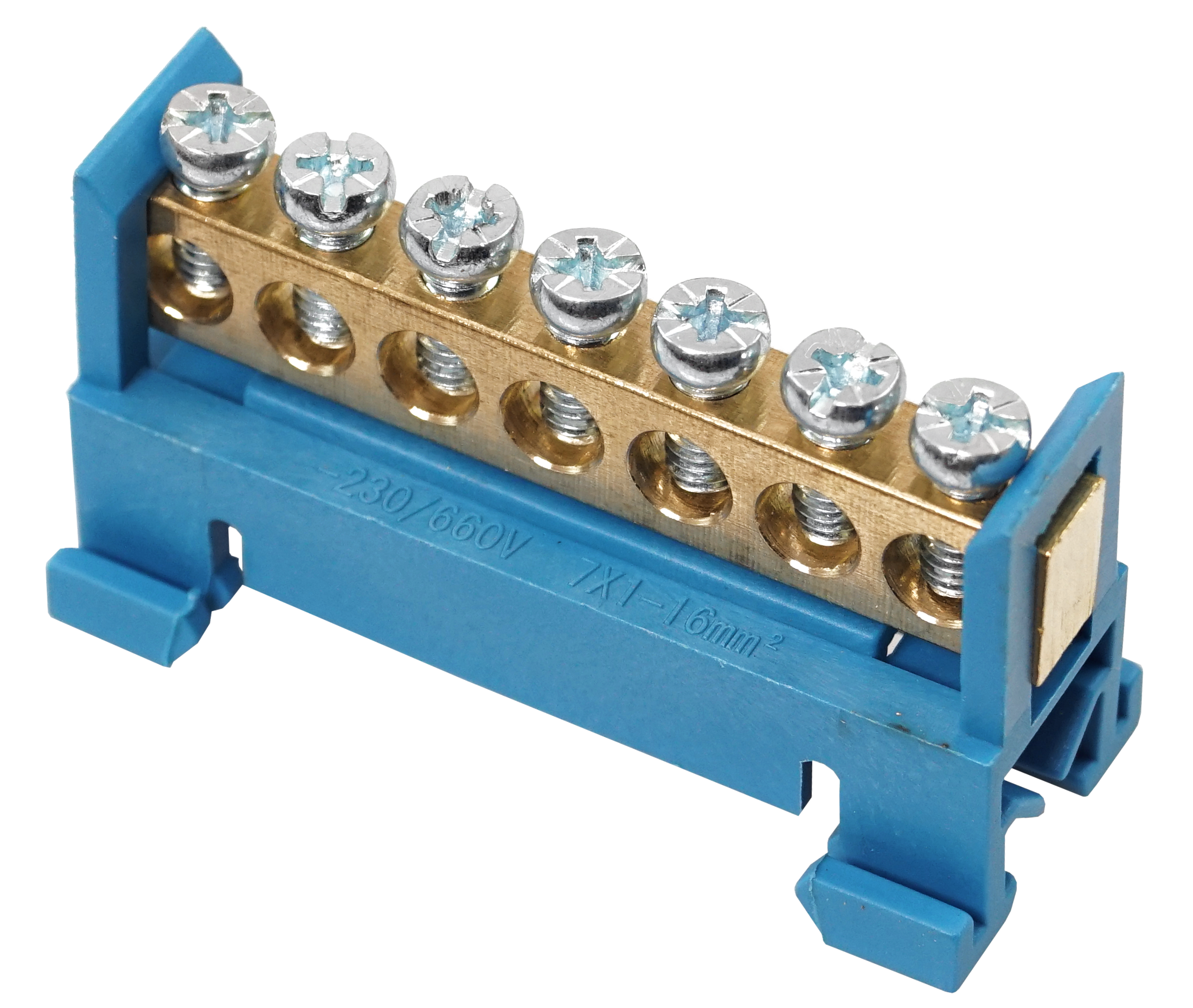 Listwa zerowa, zaciskowa, 7 otworowa, niebieska