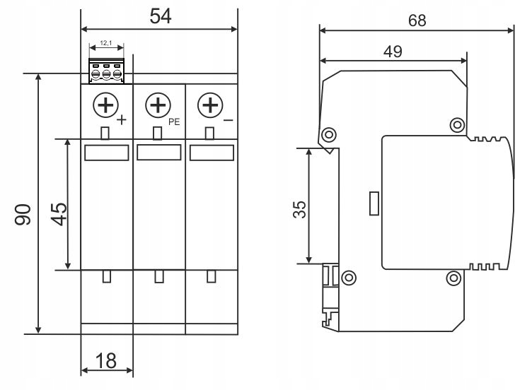 - Montaż: szyna 35 mm,