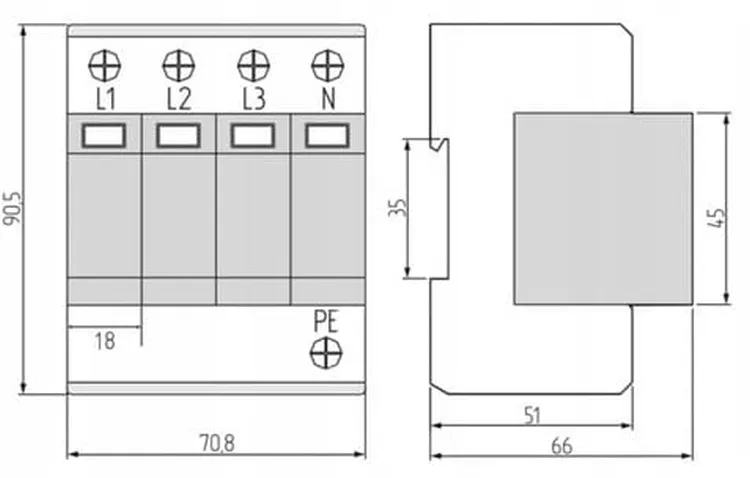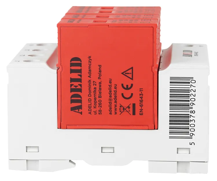 Ochronnik przeciwprzepięciowy 4-polowy, 3-fazowy klasa B+C, do montażu na szynę TH35