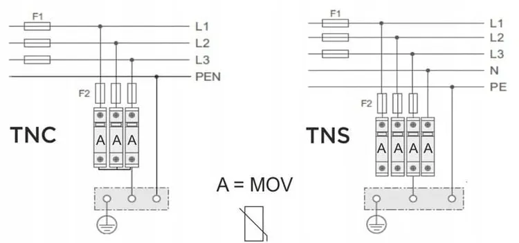 - Ograniczniki przepięć wykorzystują połączenie przewodów miedzianych 6,0 ~ 25 mm 2;