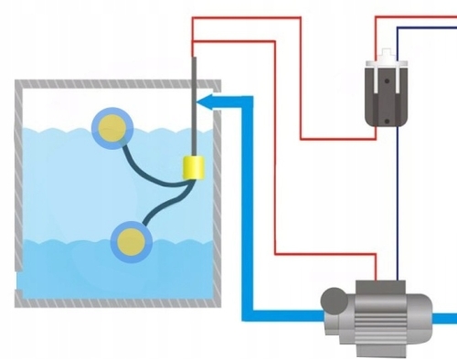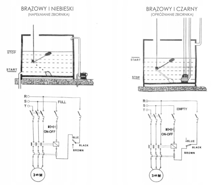 Wyłącznik pływakowy ma dwie funkcje: wypompowywania oraz napełniania.
