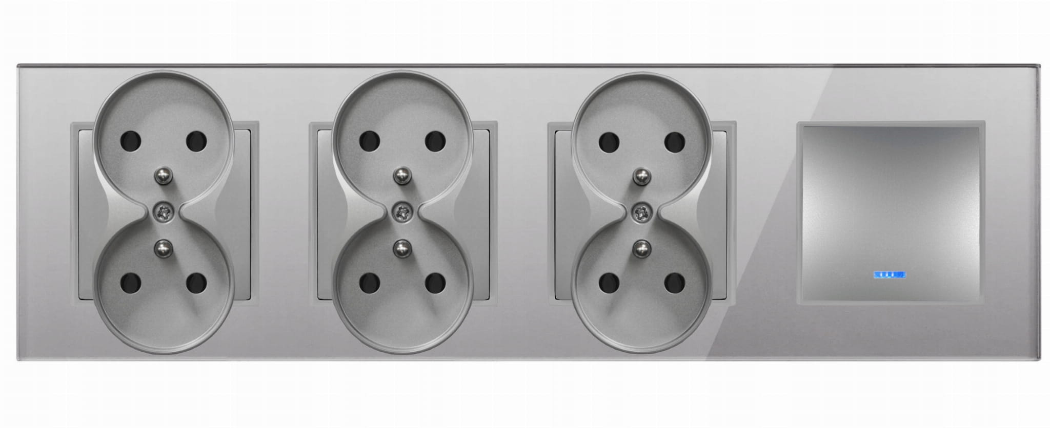 - Ramka potrójna, szklana, do montażu natynkowego, w poziomie, w dowolnej konfiguracji gniazd oraz włączników.