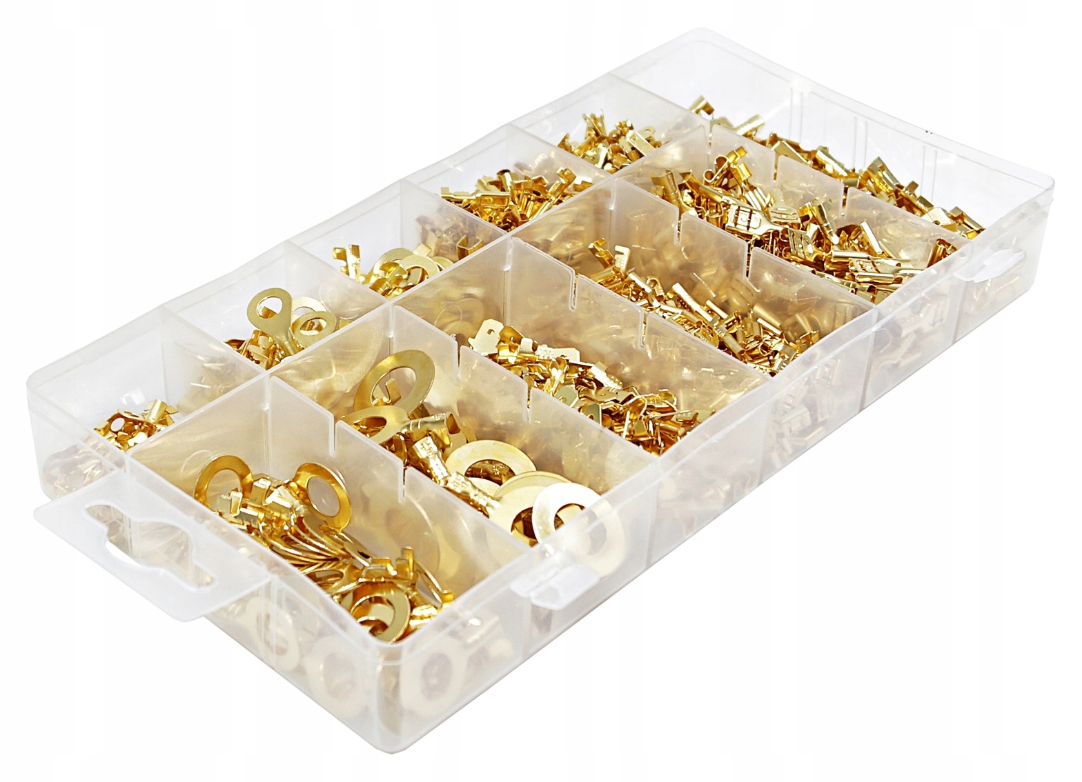 - komplet 750 szt. konektorów nieizolowanych, w trzech rozmiarach- w wersji męskiej i żeńskiej, oraz oczkowych w poręcznym organizerze,