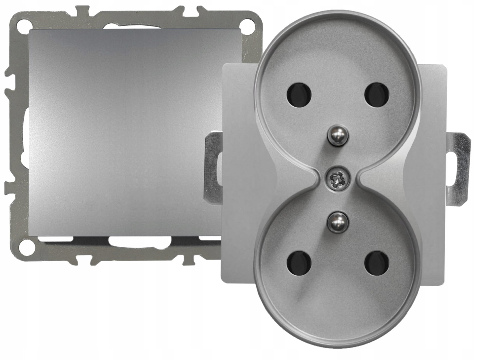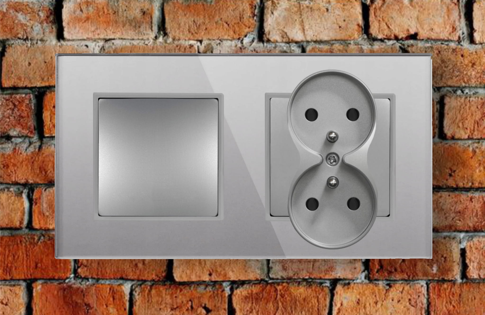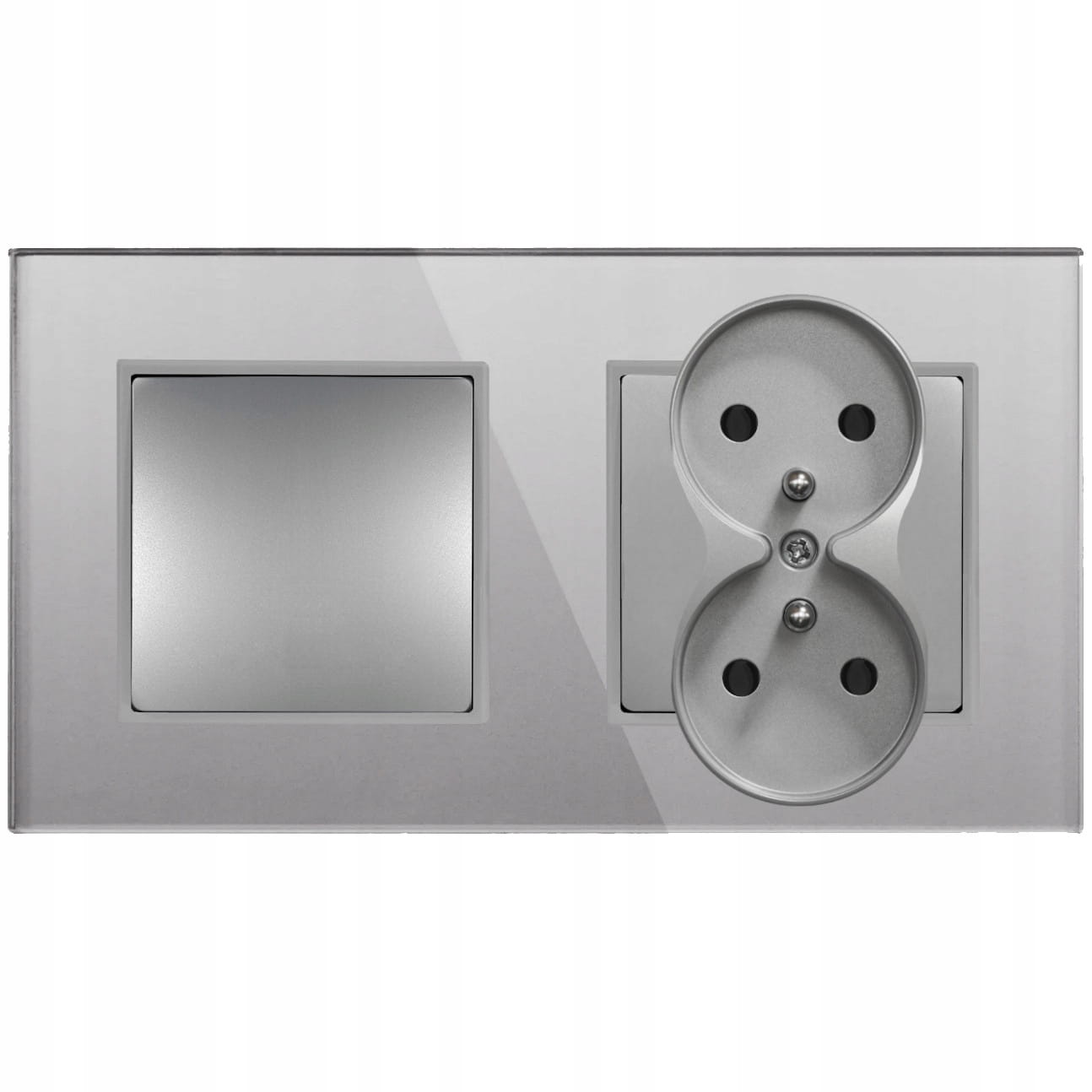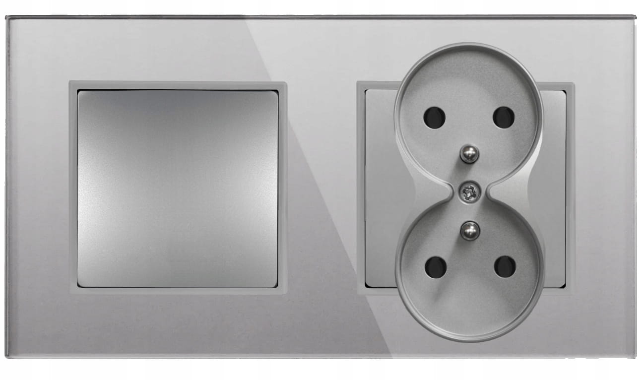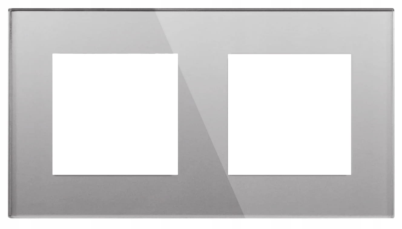 - Rodzaj: gniazdko podwójne z włącznikiem pojedynczym, w ramce szklanej