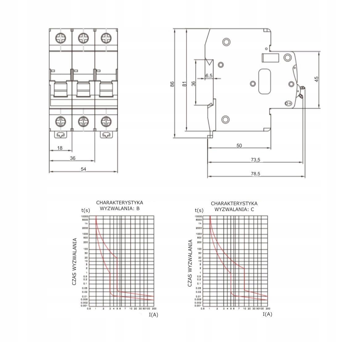 - Charakterystyka wyzwalania: B