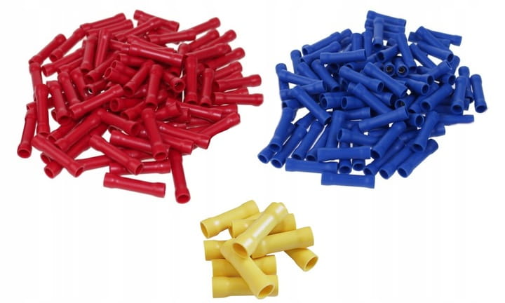 Zestaw - komplet 100 szt. wysokiej jakości złączy izolowanych, do łączenia odizolowanych końcówek przewodów.