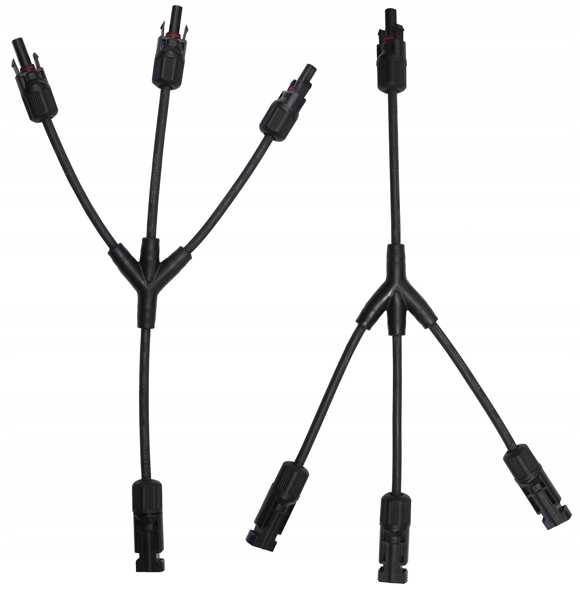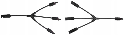 Zestaw konektorów typu Y, do zastosowania w instalacjach fotowoltaicznych, np. w przypadku połączeń pomiędzy poszczególnymi panelami fotowoltaicznymi.