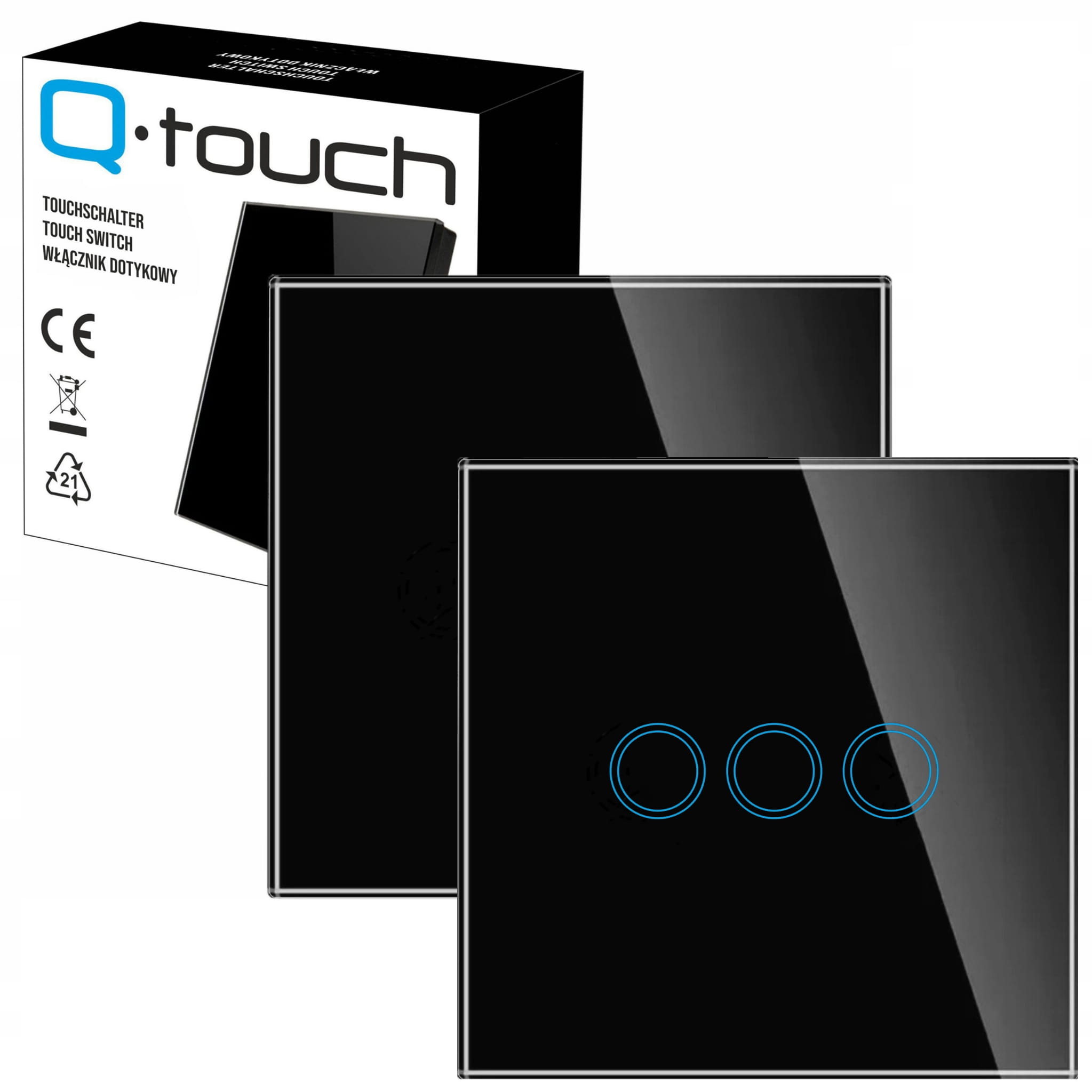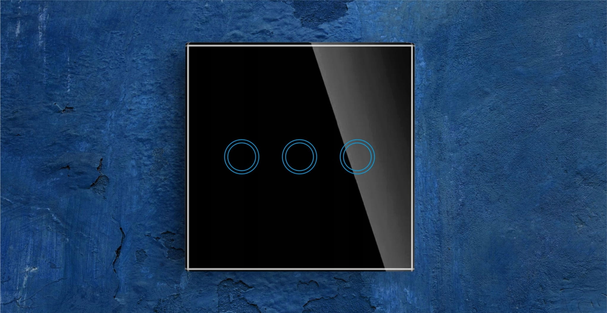 - Włącznik dotykowy, szklany, potrójny, w kolorze czarnym, z możliwością sterowania pilotem.