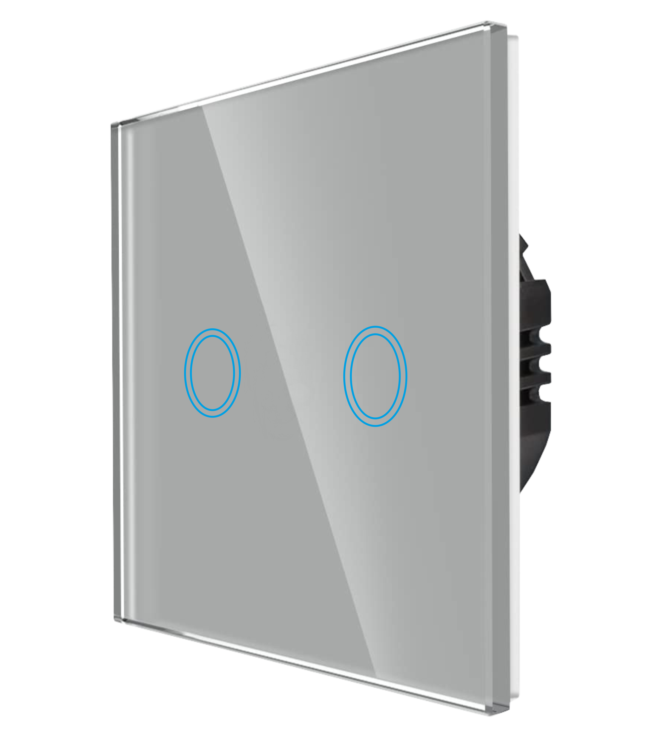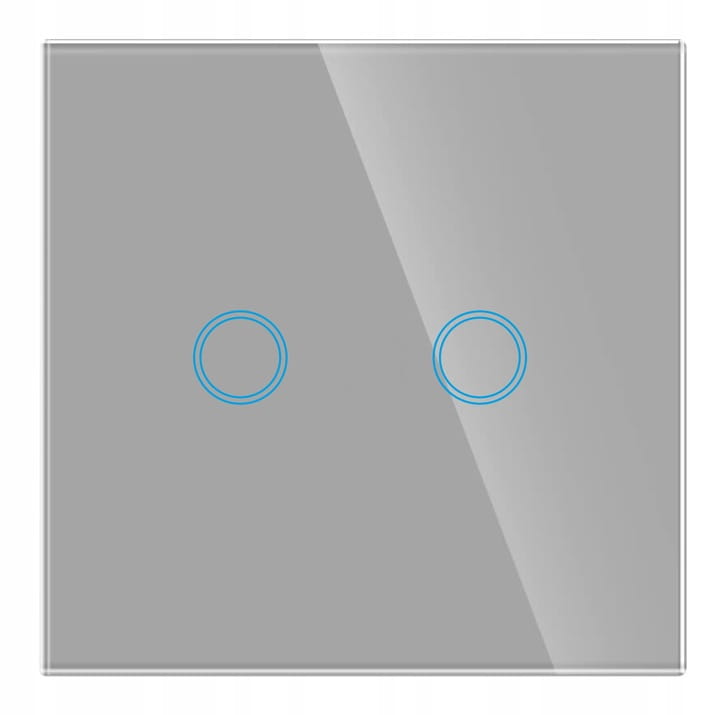 - Włącznik dotykowy, szklany, podwójny, w kolorze szarym, z możliwością sterowania pilotem.