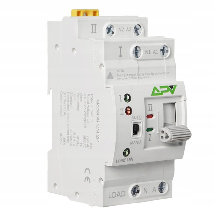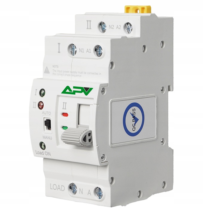 1-FAZOWY AUTOMATYCZNY PRZEŁĄCZNIK ZASILANIA, 2P, 63A, 230V, DO FOTOWOLTAIKI, MARKI APV.