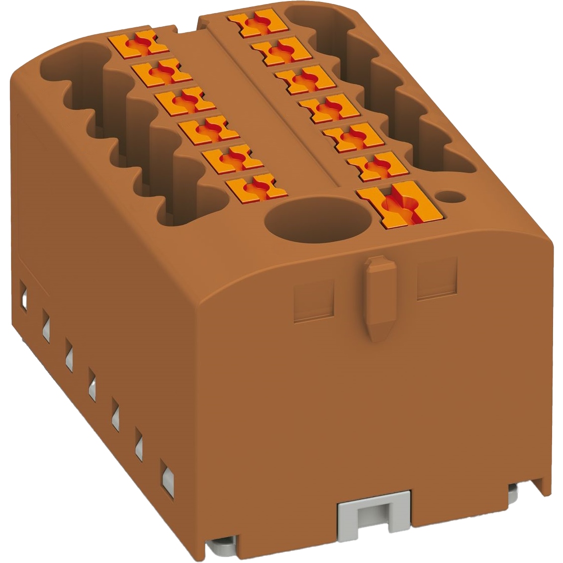 Blok rozdzielczy BRX 6/12x2,5 BN, marki ADELID, w kolorze brązowym, na adapter szyny DIN, serii BRX.