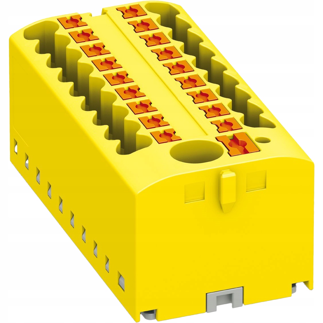 Blok rozdzielczy BRX 6/18x2,5 YE, marki ADELID, w kolorze żółtym, na adapter szyny DIN, serii BRX.