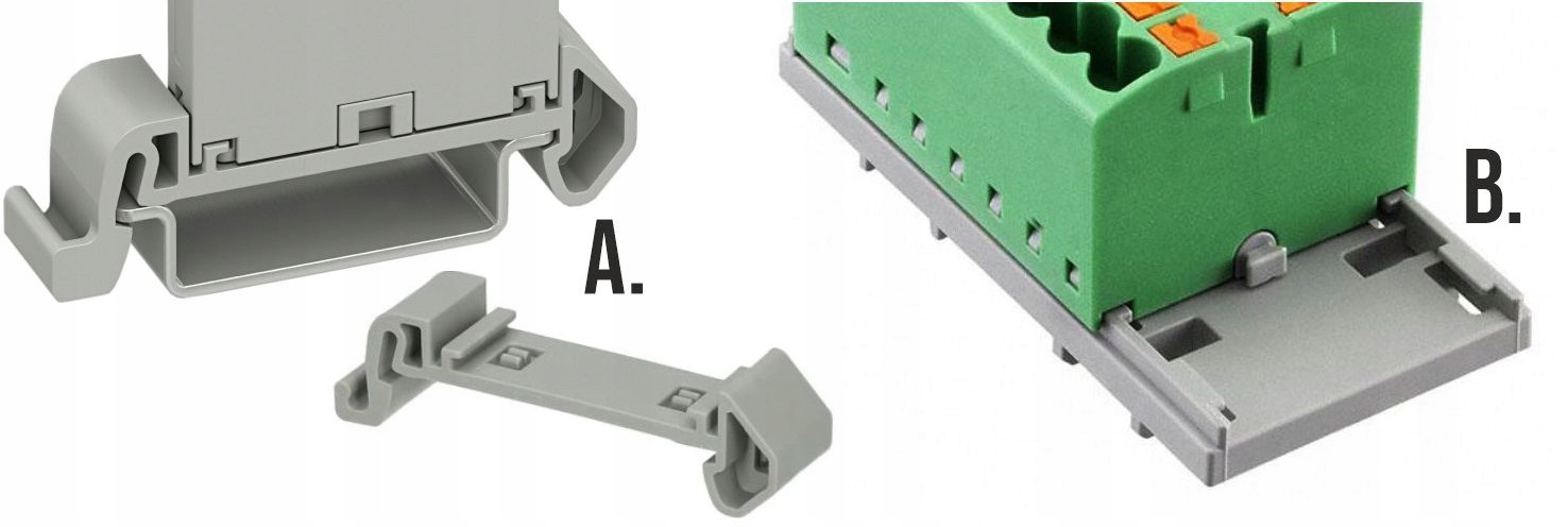 Złączka do montażu na dedykowanej podstawie - NS35A lub NS35B. Podstawy dostępne na naszych innych ofertach.