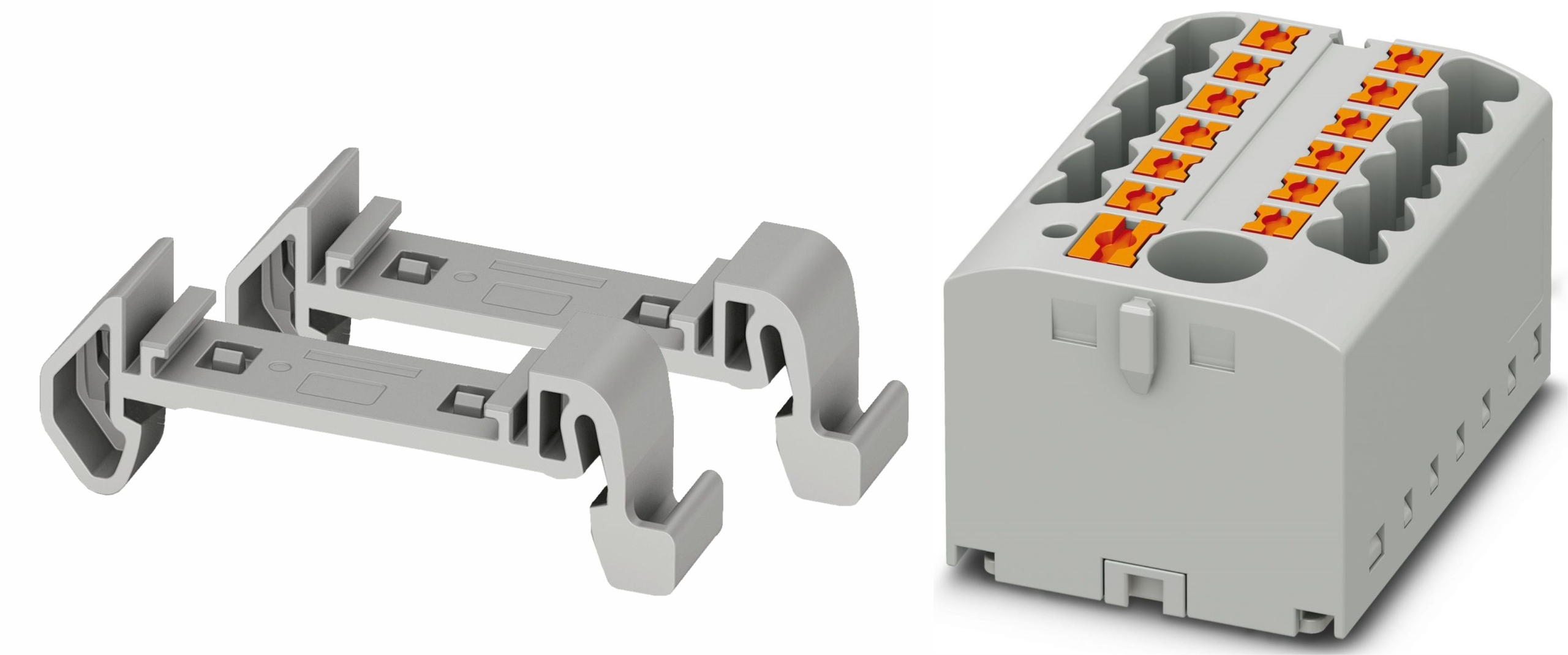 - Elastyczne zastosowanie dzięki możliwości montażu na szynie DIN i montażu bezpośredniego za pomocą adaptera oraz montażu klejonego.