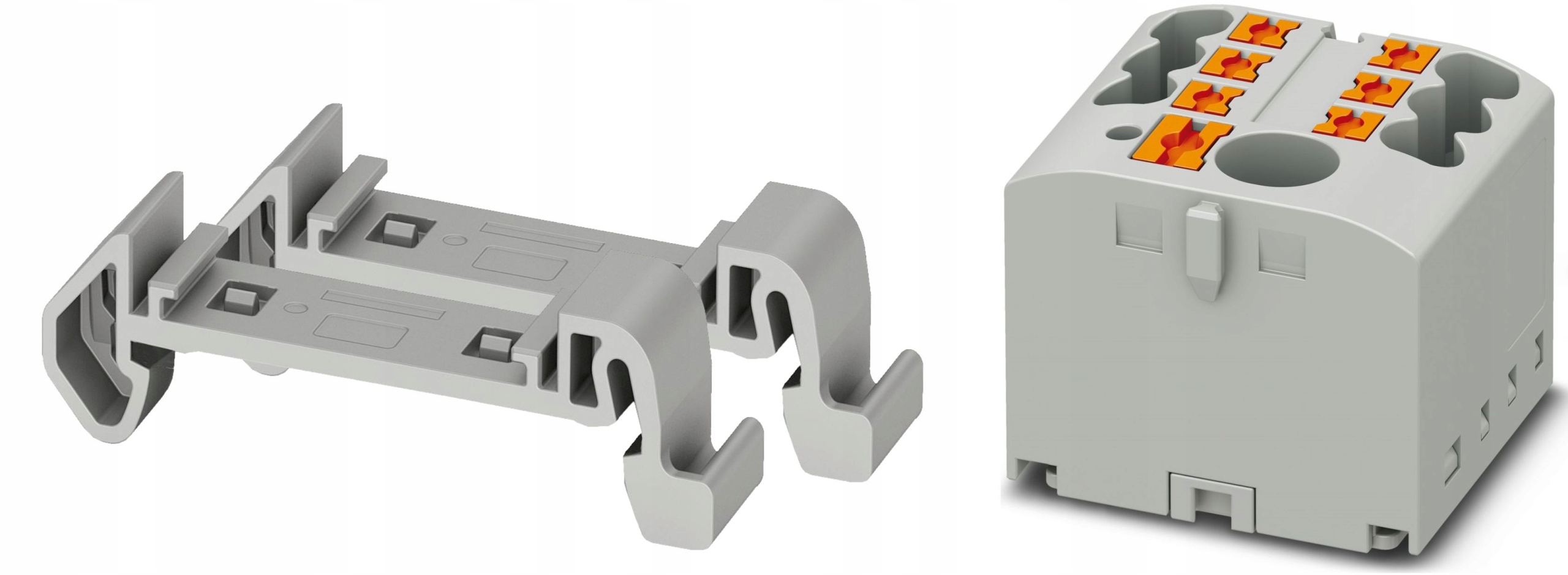 - Elastyczne zastosowanie dzięki możliwości montażu na szynie DIN i montażu bezpośredniego za pomocą adaptera oraz montażu klejonego.