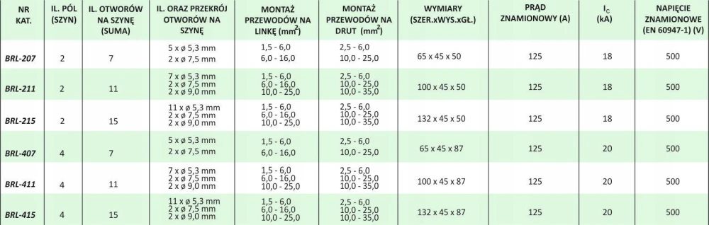 Bloki rozdzielcze różnią się między sobą pojemnością, umiejscowieniem w rozdzielnicy oraz sposobem przyłączania.