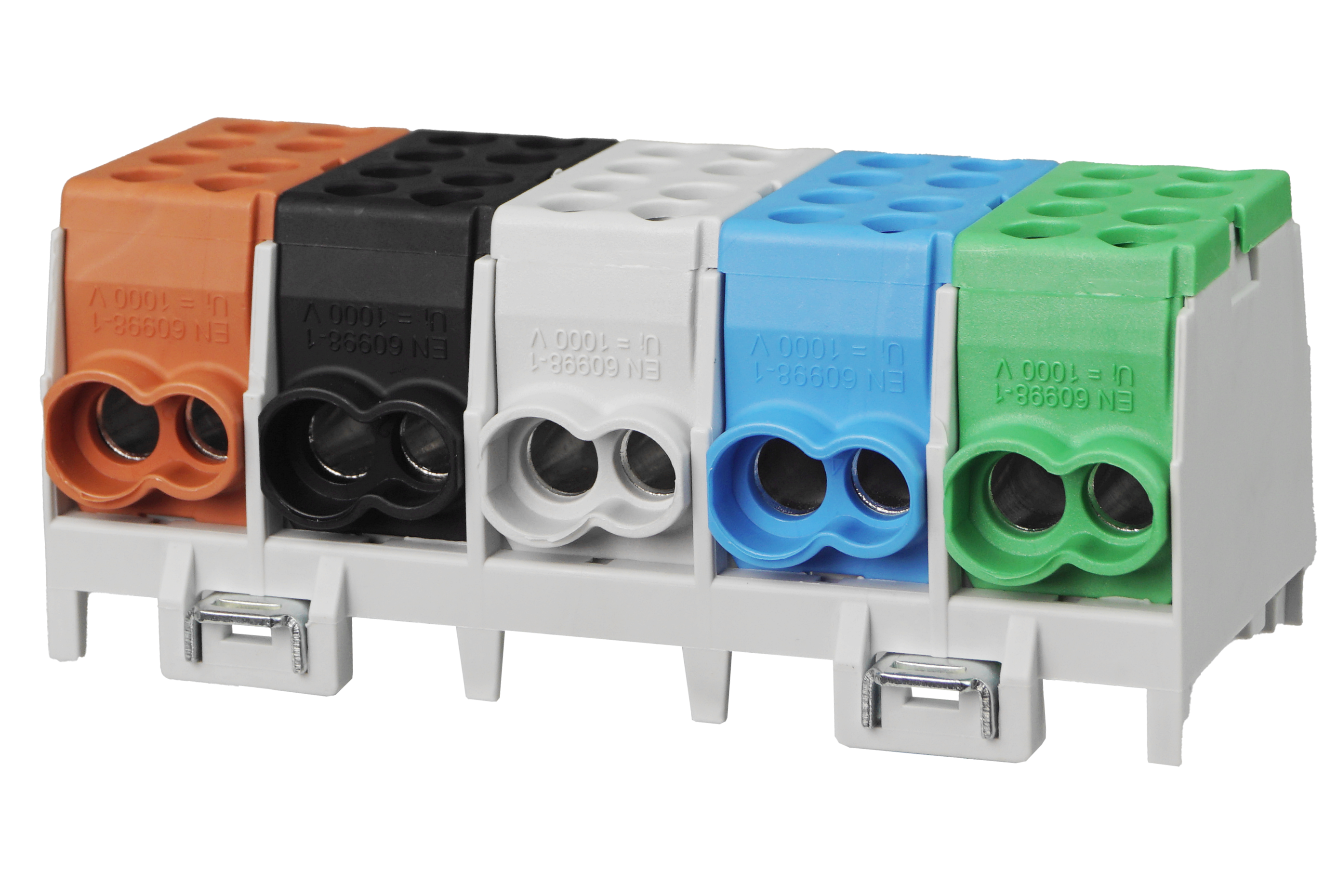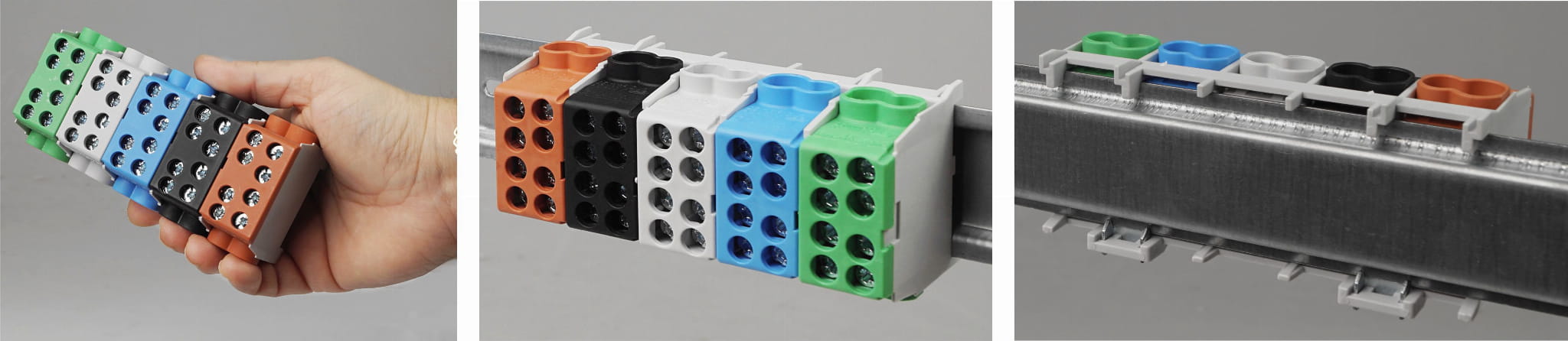 - Zaciski te pozwalają łączyć ze sobą przewody miedziane i aluminiowe. Zaciski montowane są na szynie TS/TH35 i mają możliwość łączenia modułowego ze sobą poprzez odpowiednio do tego zaprojektowane elementy mocujące.