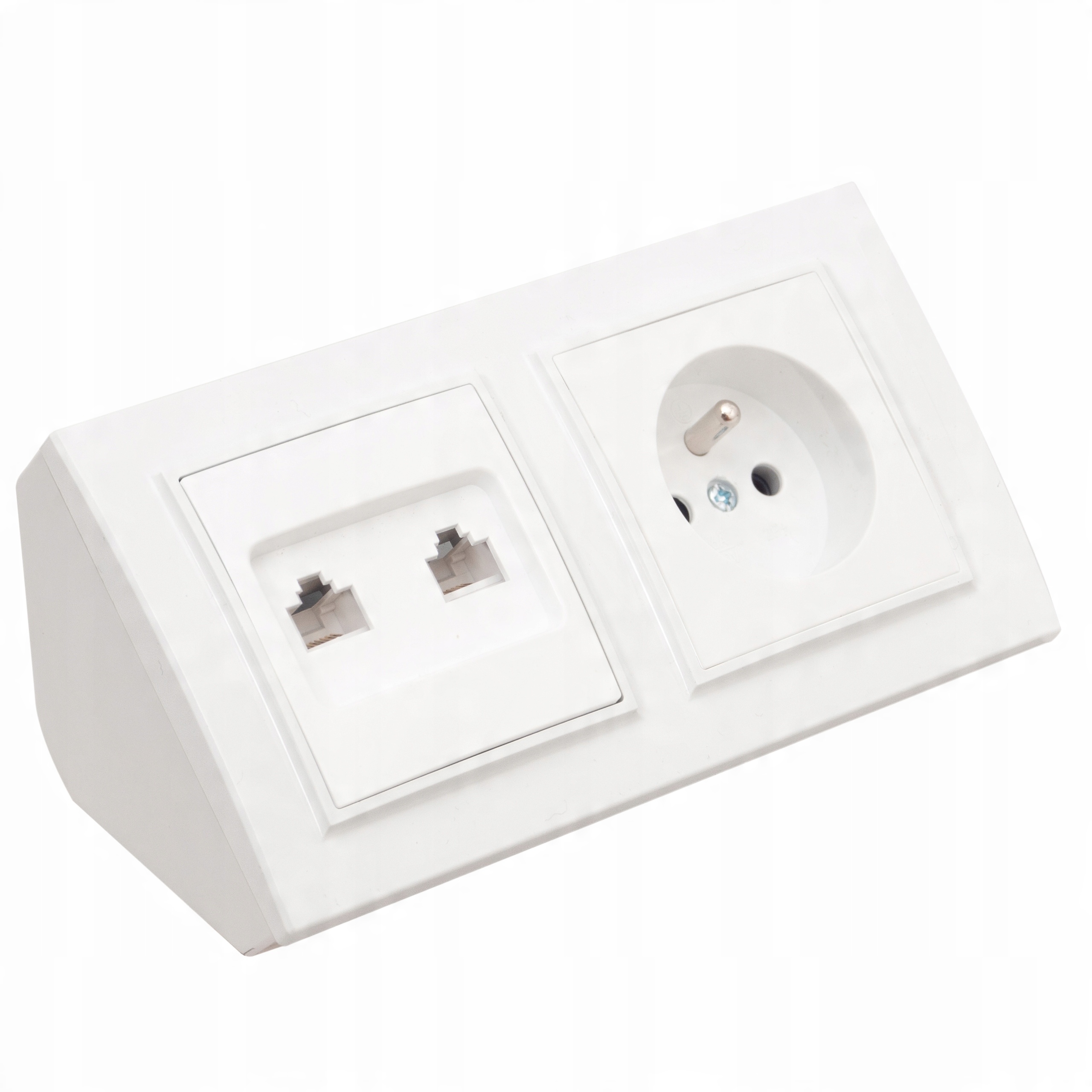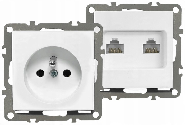 - Rodzaj: gniazdko z uziemieniem oraz gniazdko komputerowe RJ45X2, w ramce plastikowej białej, w puszce podwójnej, narożnej,