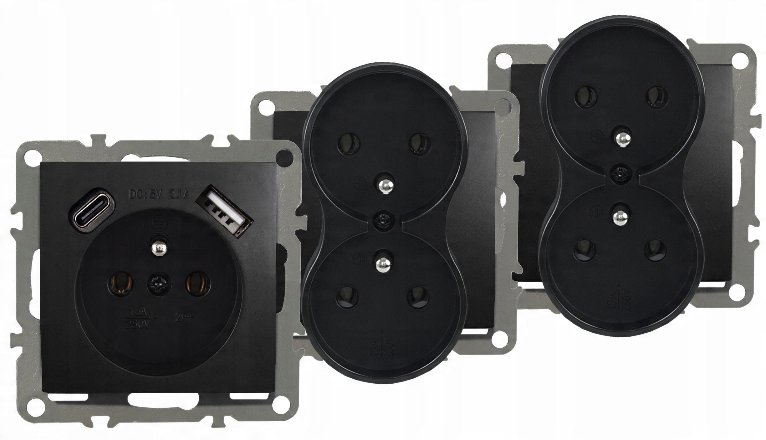 - gniazdko pojedyncze z USB typ C czarne - 1 szt.