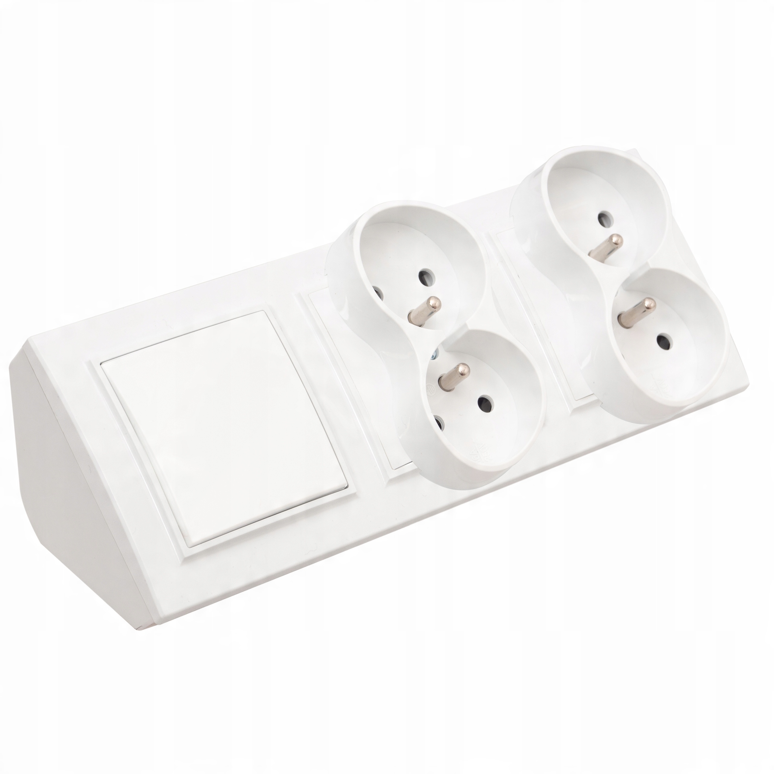 Eleganckie, poczwórne gniazdo elektryczne z wyłącznikiem w ramce oraz puszcze narożnej. Idealnie sprawdzi się w każdym wnętrzu – od nowoczesnych mieszkań po biura.
