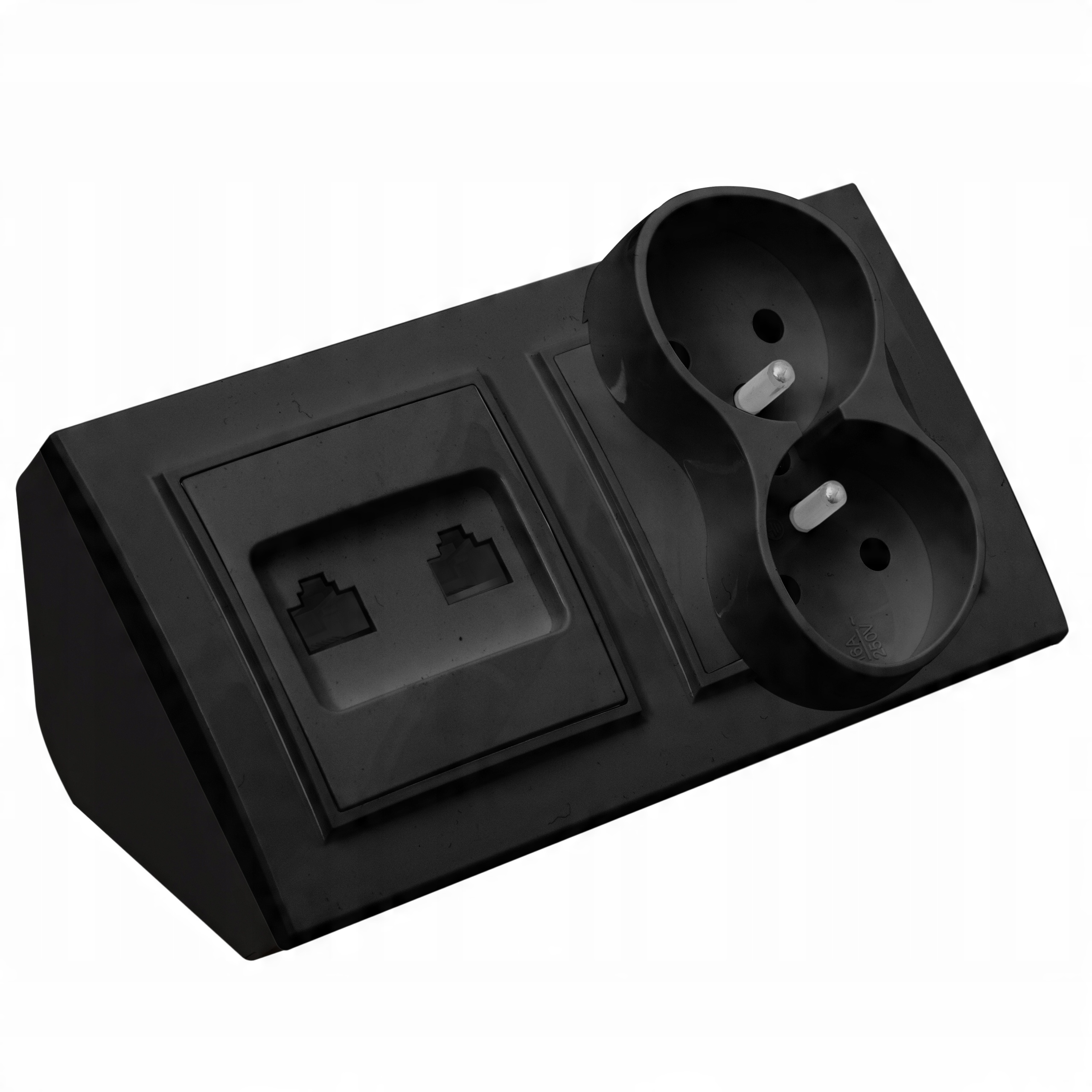 GNIAZDO PODWÓJNE MEBLOWE NAROŻNE BIUROWE RJ45 BIURKOWE CZARNE MATOWE