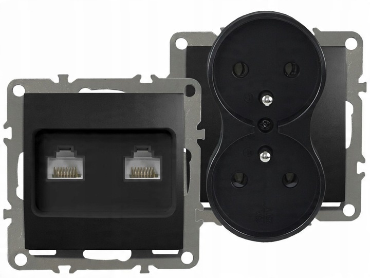 - gniazdko internetowe RJ45X2 czarne - 1 szt.