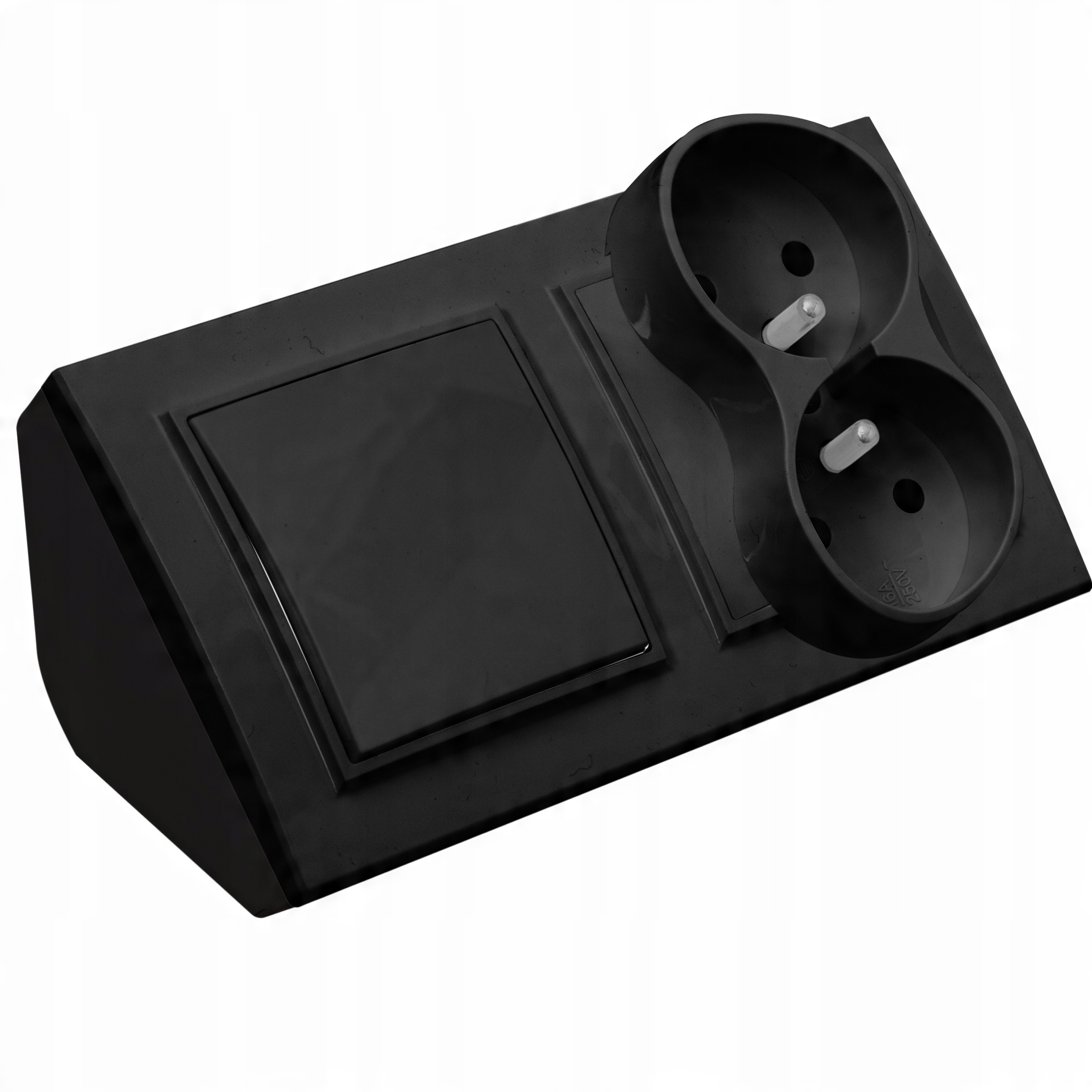 GNIAZDO PODWÓJNE MEBLOWE NAROŻNE KUCHENNE Z WYŁĄCZNIKIEM CZARNE MATOWE