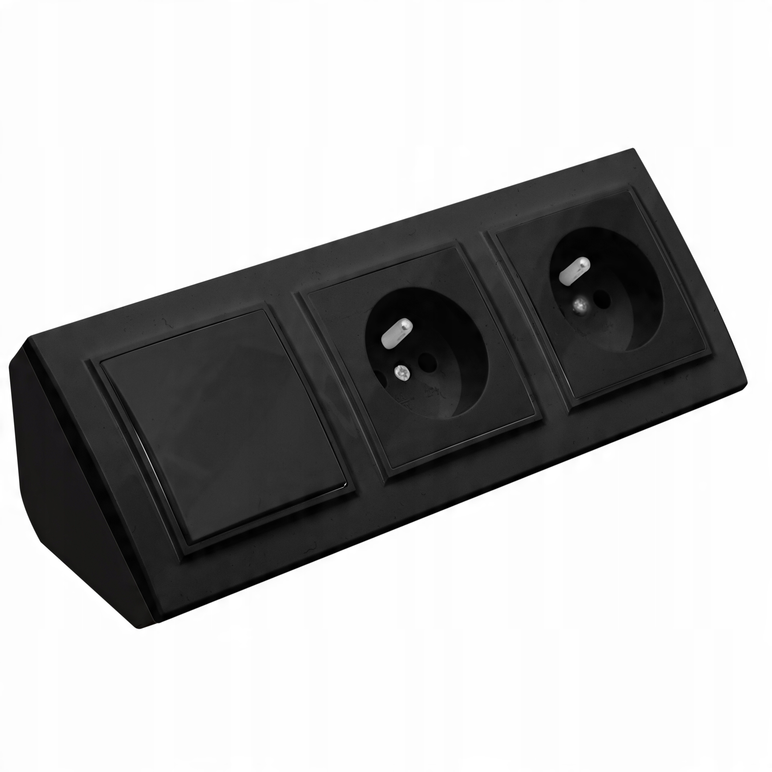 GNIAZDO PODWÓJNE MEBLOWE NAROŻNE Z WYŁĄCZNIKIEM CZARNE MATOWE LISTWA