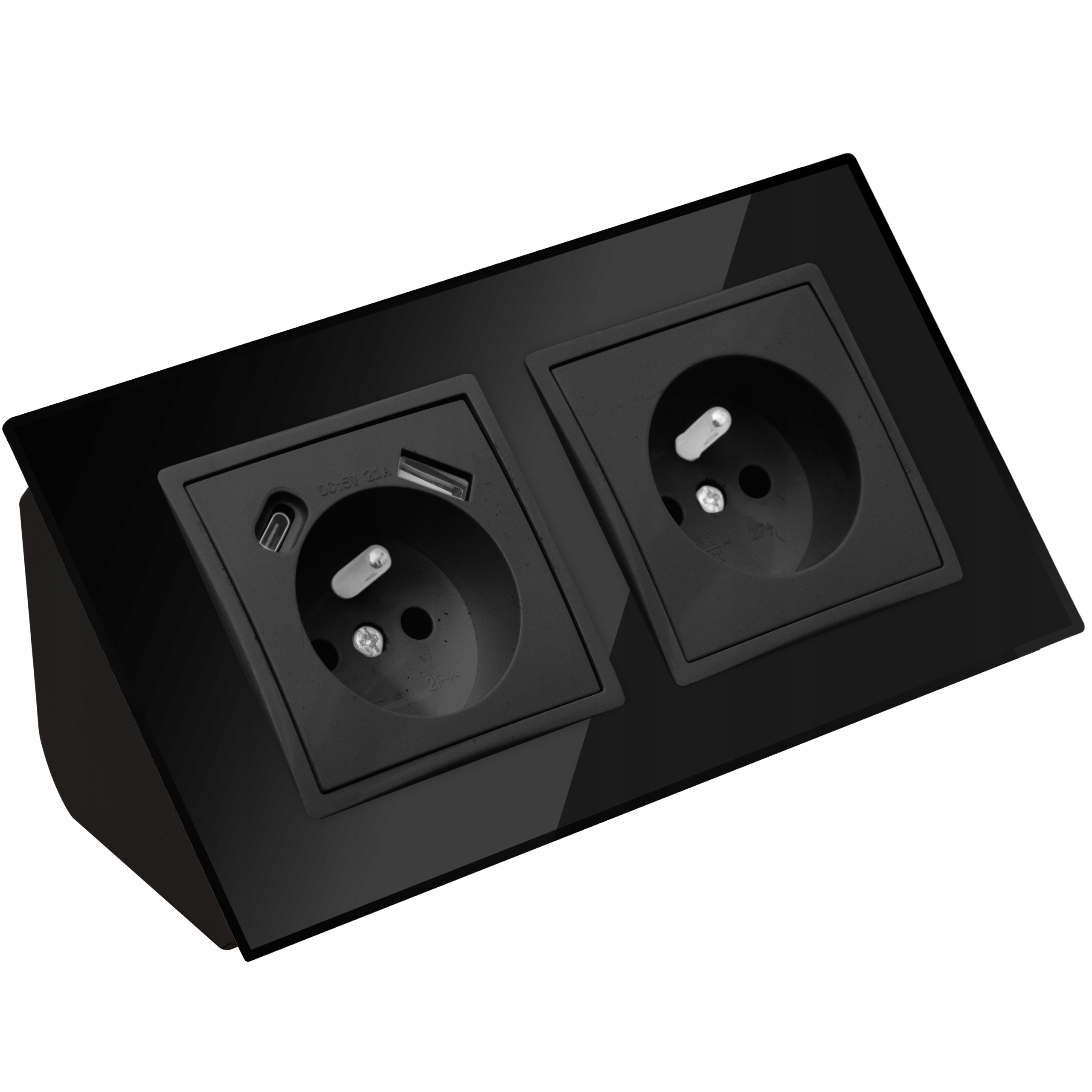 GNIAZDO PODWÓJNE SZKLANE MEBLOWE NAROŻNE BIURKOWE USB TYP C CZARNE MATOWE
