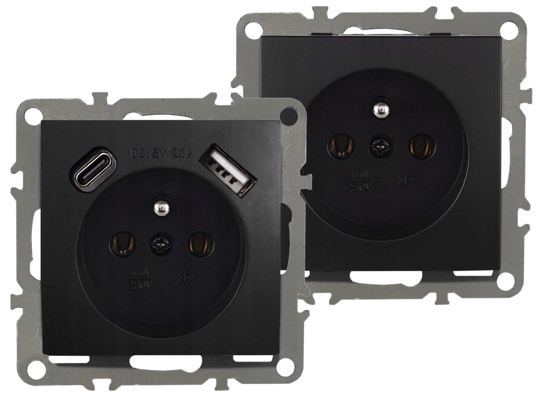 - gniazdko pojedyncze z USB typ C czarne - 1 szt.