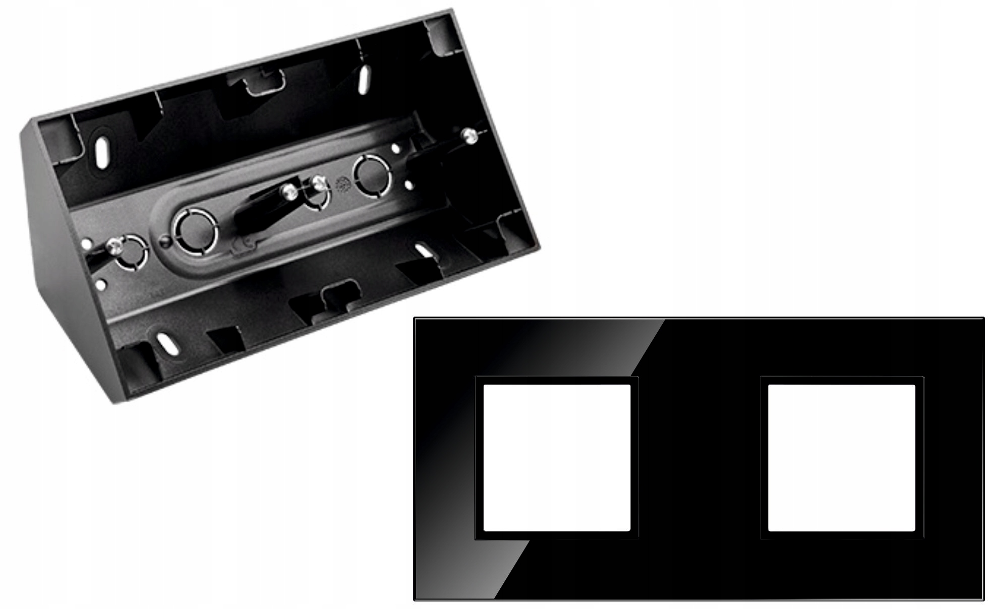 Gniazdko podwójne w ramce szklanej jest bardzo wysokiej jakości, zamontowane w plastikowej, czarnej puszce, znajdzie zastosowanie nie tylko w domu ale również w pomieszczeniach gospodarczych.