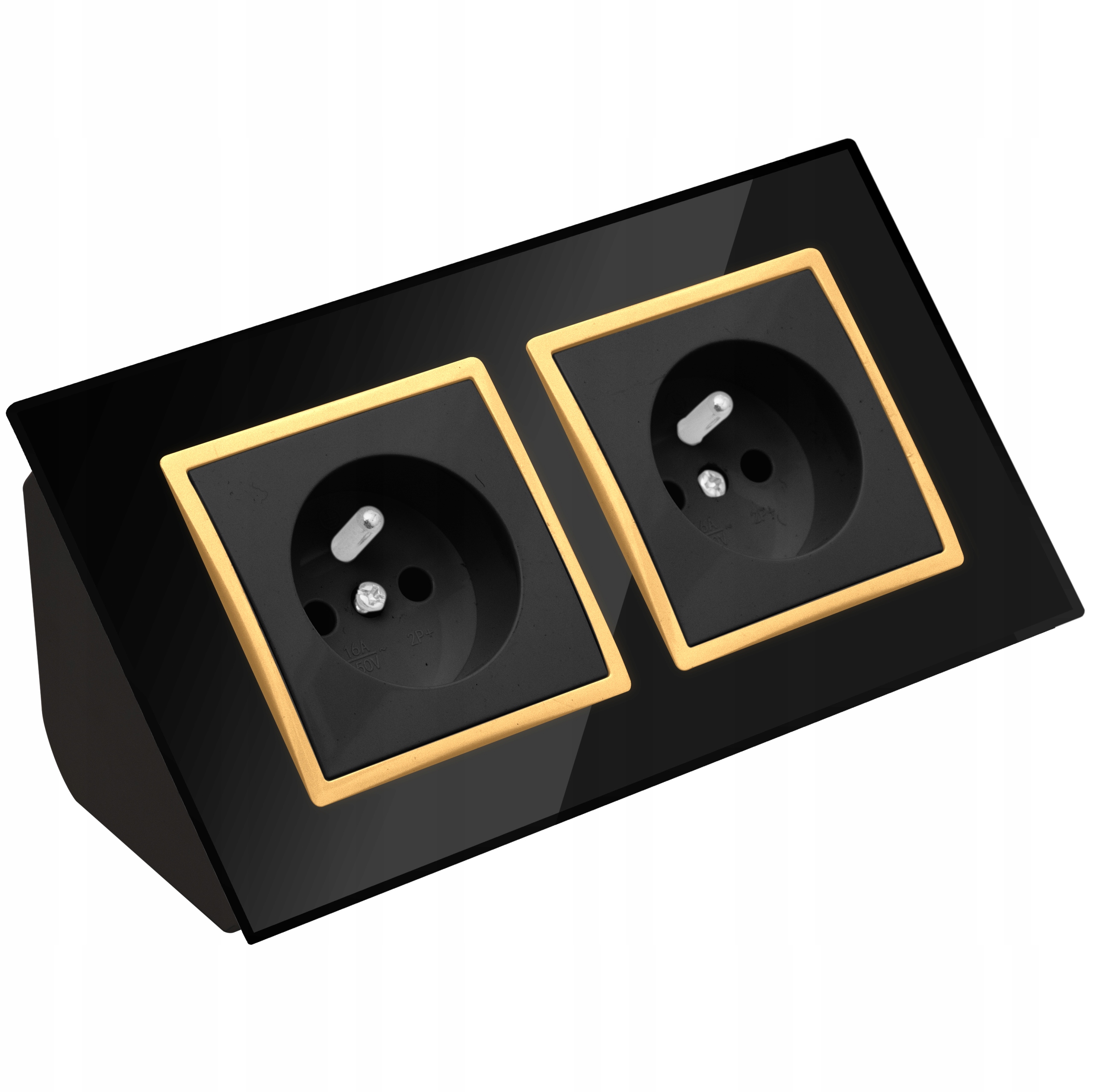 Gniazdo szklane, podwójne, nablatowe, czarne złote-kuchenne, meblowe, biurkowe.