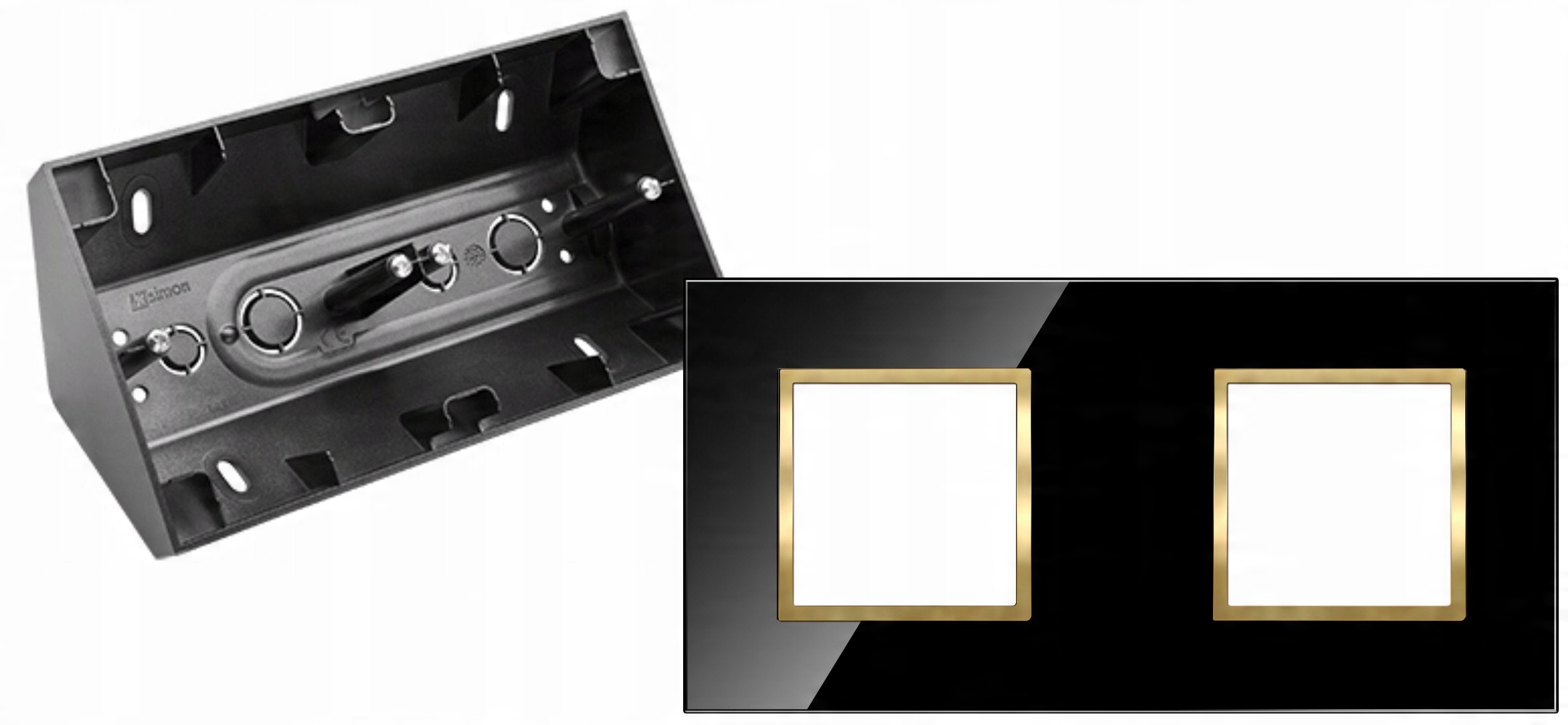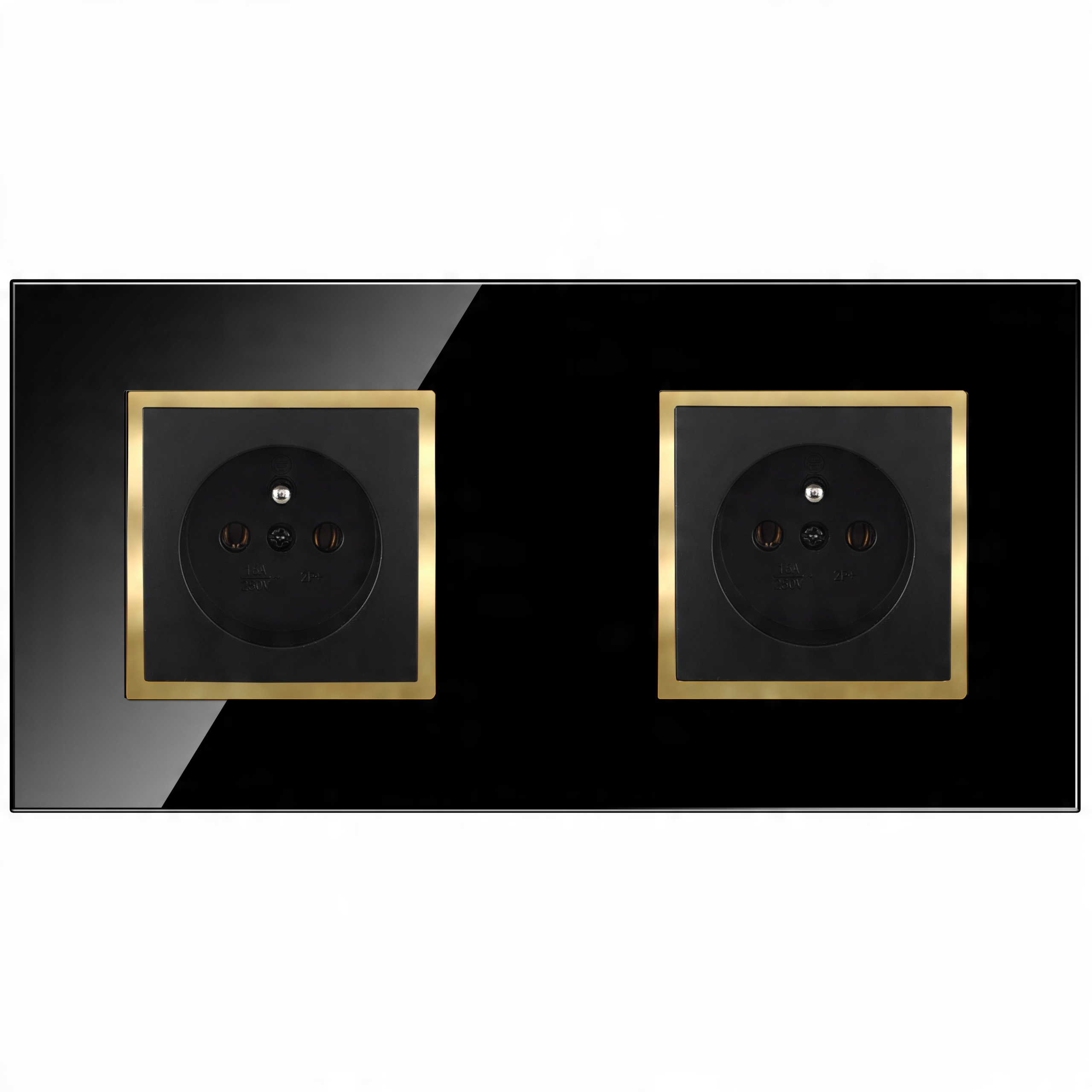 Eleganckie, podwójne gniazdo elektryczne z nowoczesnym szklanym panelem w czarno- złotym kolorze. Idealnie sprawdzi się w każdym wnętrzu – od nowoczesnych mieszkań po biura. Zapewnia nie tylko funkcjonalność, ale również stylowy wygląd. Wysoka jakość wykonania gwarantuje trwałość i bezpieczeństwo użytkowania.
