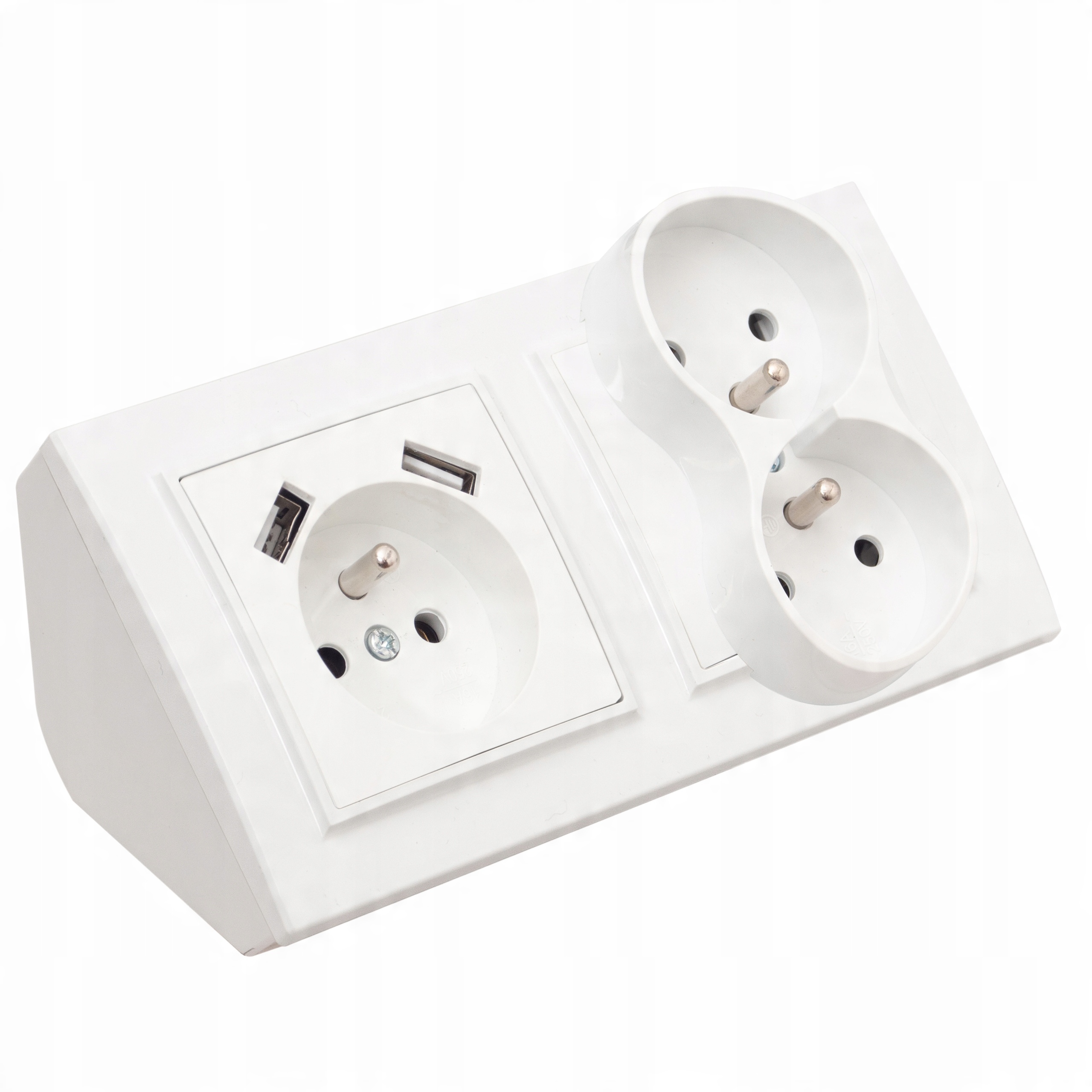 GNIAZDO POTRÓJNE MEBLOWE NAROŻNE BIURKOWE KUCHENNE 2XUSB BIAŁE MATOWE