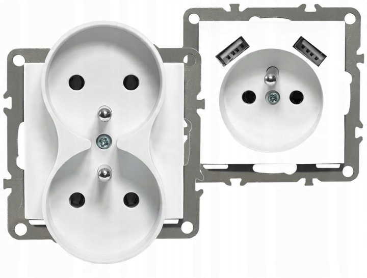 - Rodzaj: gniazdko z uziemieniem oraz USB x2, w ramce plastikowej białej, w puszce podwójnej, narożnej,