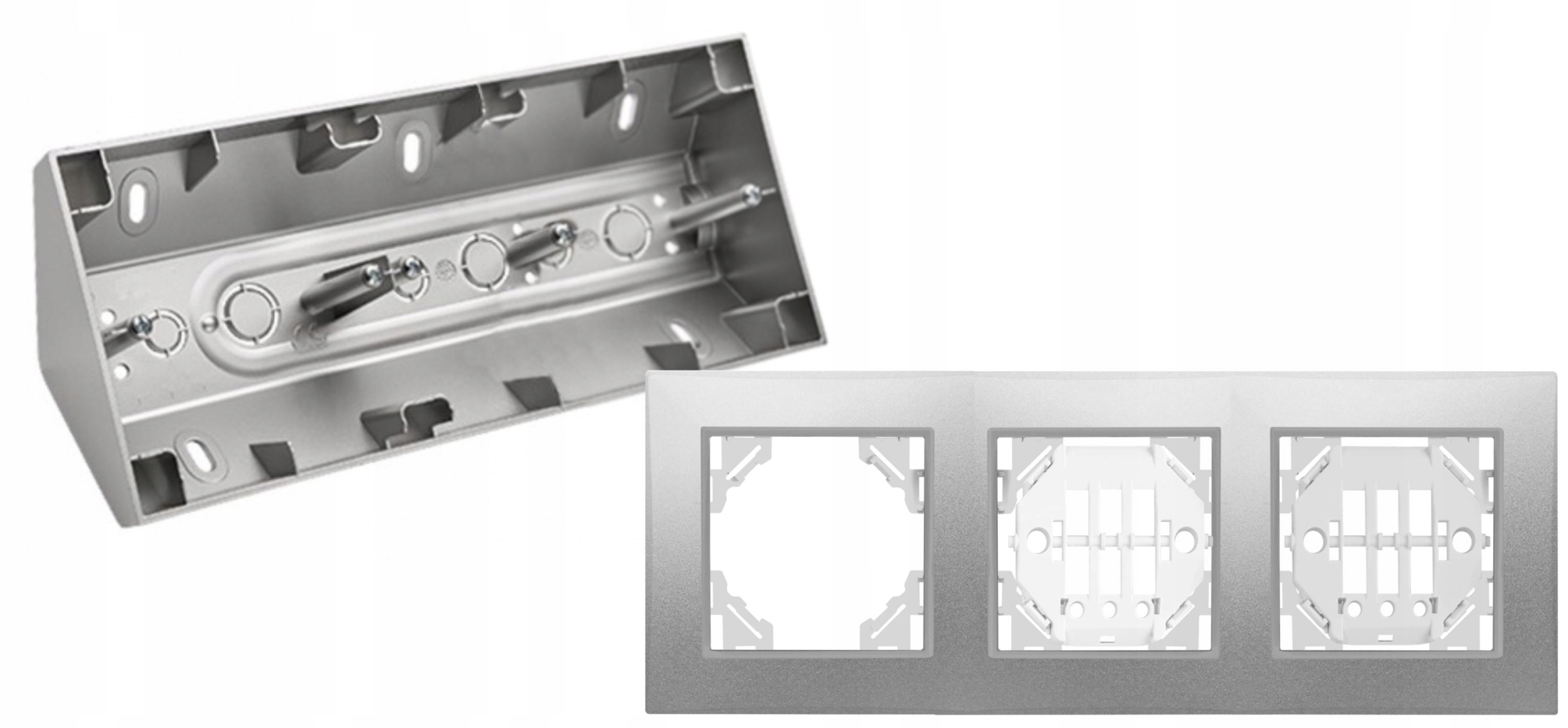 Eleganckie, potrójne gniazdo elektryczne w ramce oraz puszcze narożnej. Idealnie sprawdzi się w każdym wnętrzu – od nowoczesnych mieszkań po biura.
