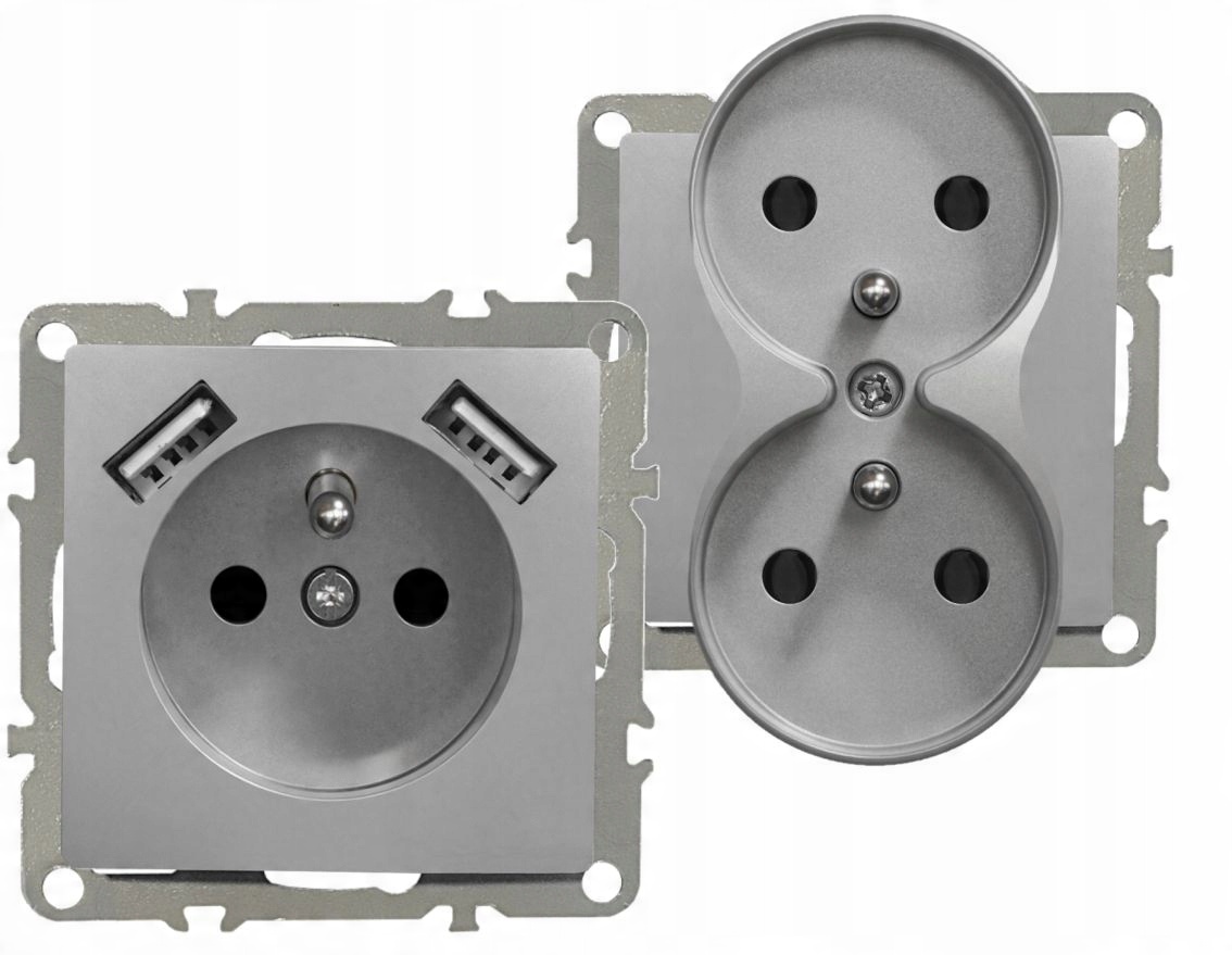 - gniazdko pojedyncze z USBX2 szare - 1 szt.