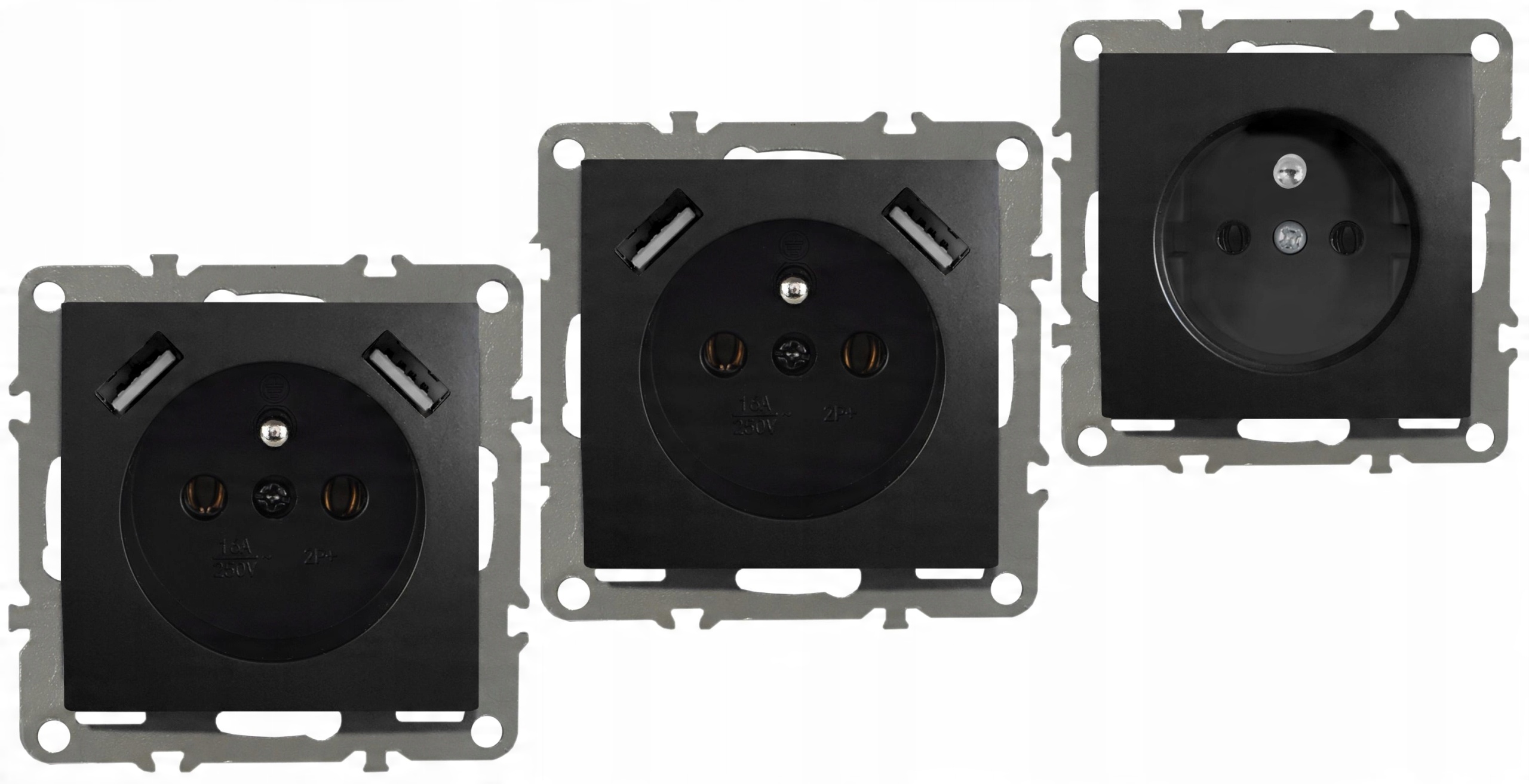 - gniazdko pojedyncze z USBX4 czarne - 2 szt.