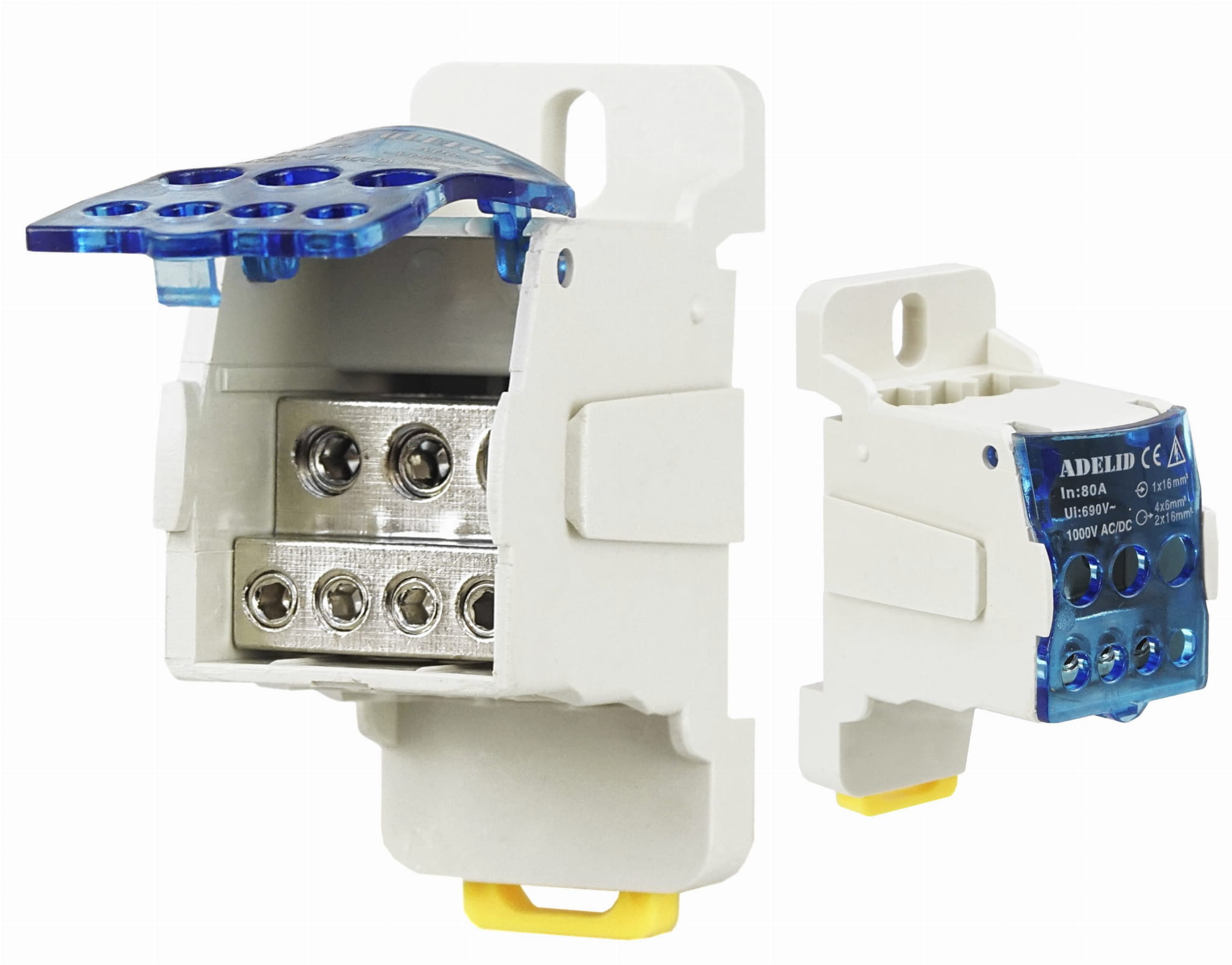 - Zaciski: In: 1 x 16 mm², Out: 4 x 6 mm², 2 x 16 mm²