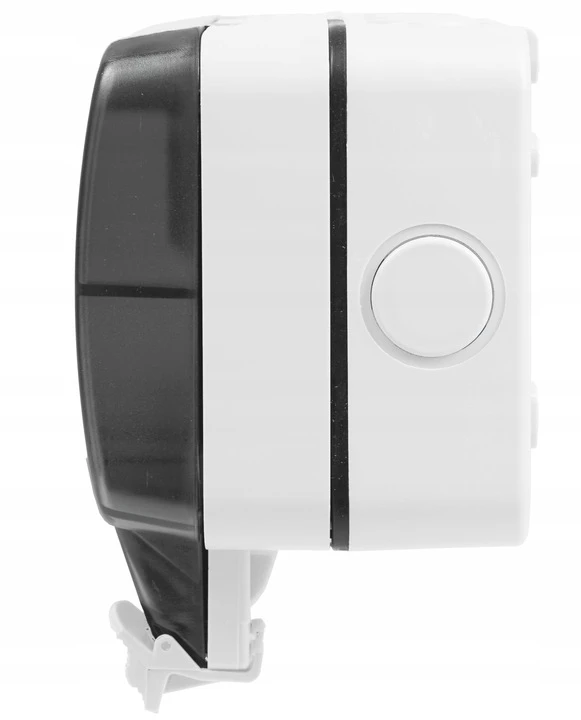 - MATERIAŁ OBUDOWY - TWORZYWO SZTUCZNE- odporne na warunki atmosferyczne. Zewnętrzne gniazdo elektryczne może wytrzymać wszystkie warunki pogodowe i jest bardzo trwałe. Pokrywa chroni gniazda elektryczne przed warunkami atmosferycznymi. Pokrywa jest zapinana na klamry, dzięki czemu woda i kurz nie przedostają się do środka. Aby chronić dzieci przed niebezpieczeństwem, należy zawsze zamykać pokrywę, niezależnie od tego, czy zasilanie jest włączone, czy wyłączone.