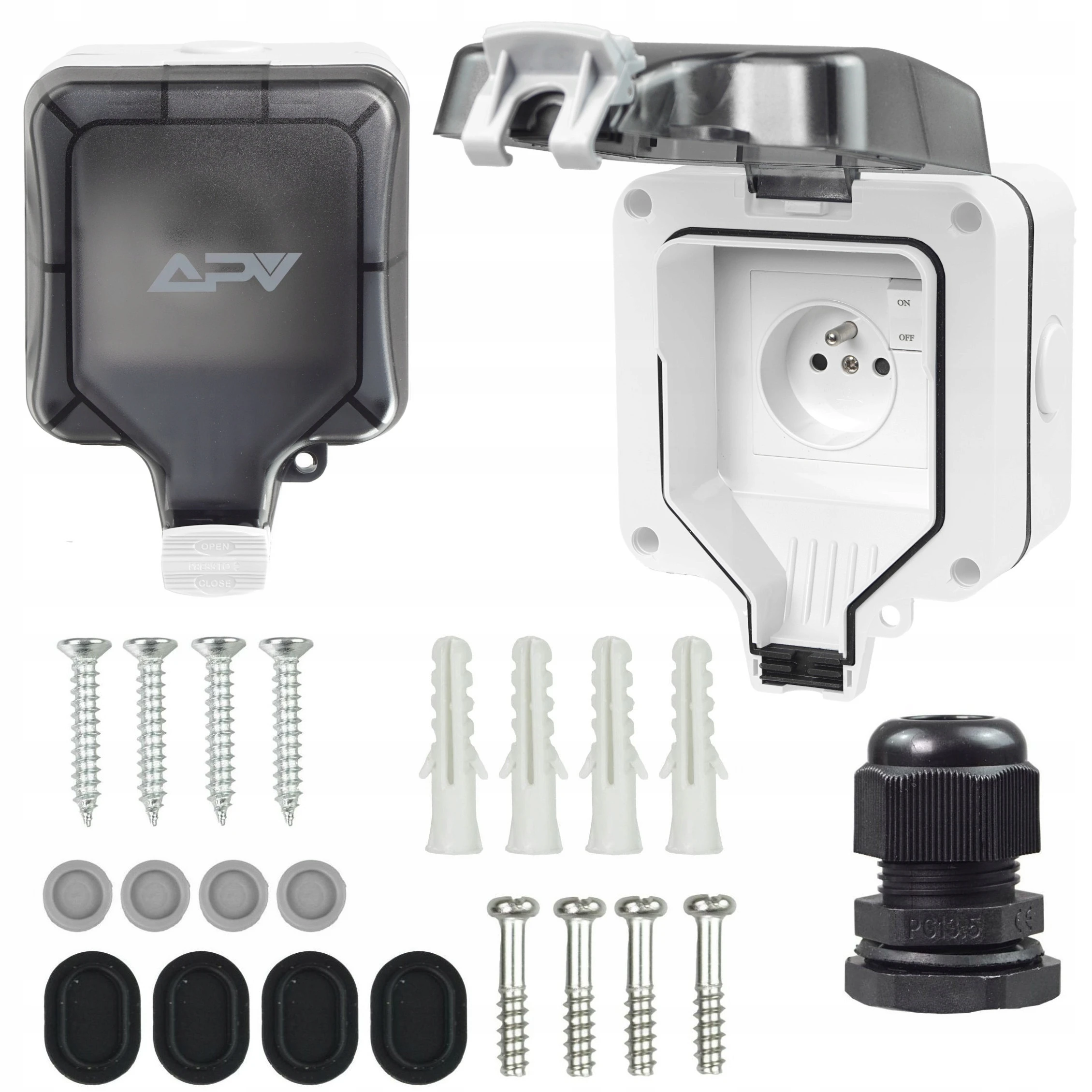 - JAKOŚĆ PREMIUM - POLSKA MARKA - APV - Gniazdo jest zrobione z wysokiej jakości materiału ABS. Który jest odporny na uderzenia oraz warunki pogodowe. Uszczelka zapobiega przedostawaniu się pyłu i wody.