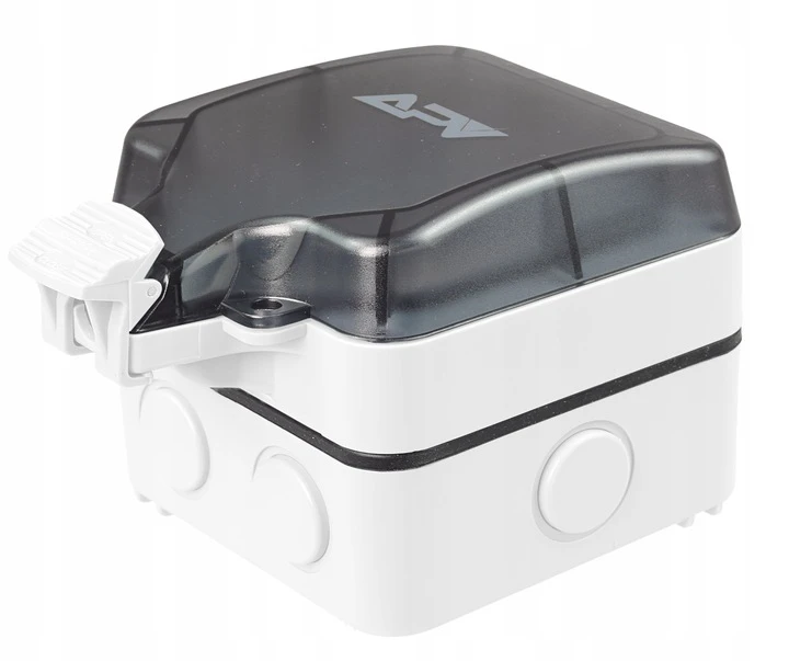 Gniazdo 230V hermetyczne, zewnętrzne, IP66, w kolorze białym, z transparentną pokrywką, z wyłącznikiem, diodą, z pełnym zestawem mocującym. Idealne do ogrodu lub magazynu.