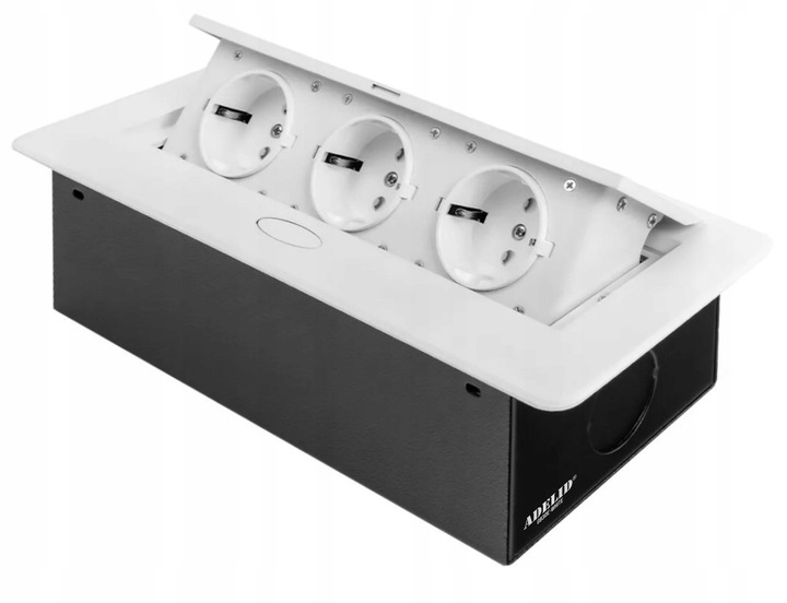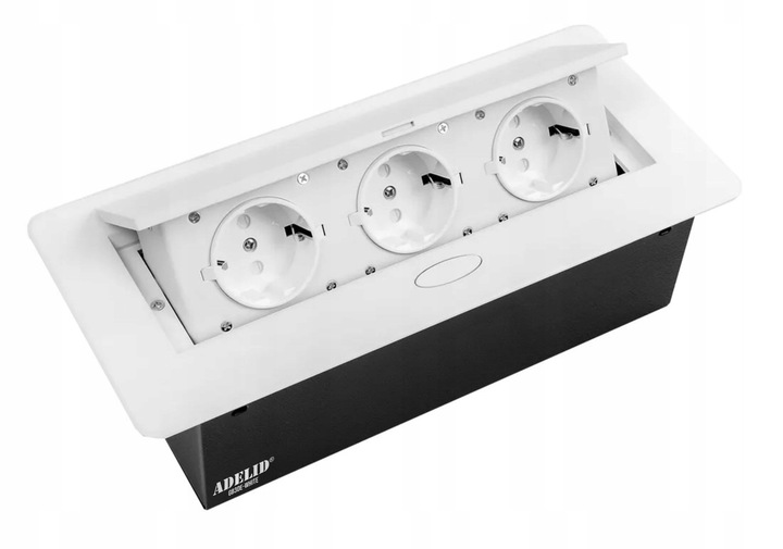 Gniazdo potrójne białe chowane w blat nablatowe gniazdko SCHUKO