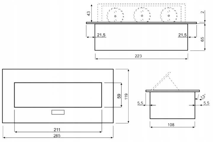 - wymiary otworu montażowego: 223 x 108 x 65 mm, (szer./wys./gł.),